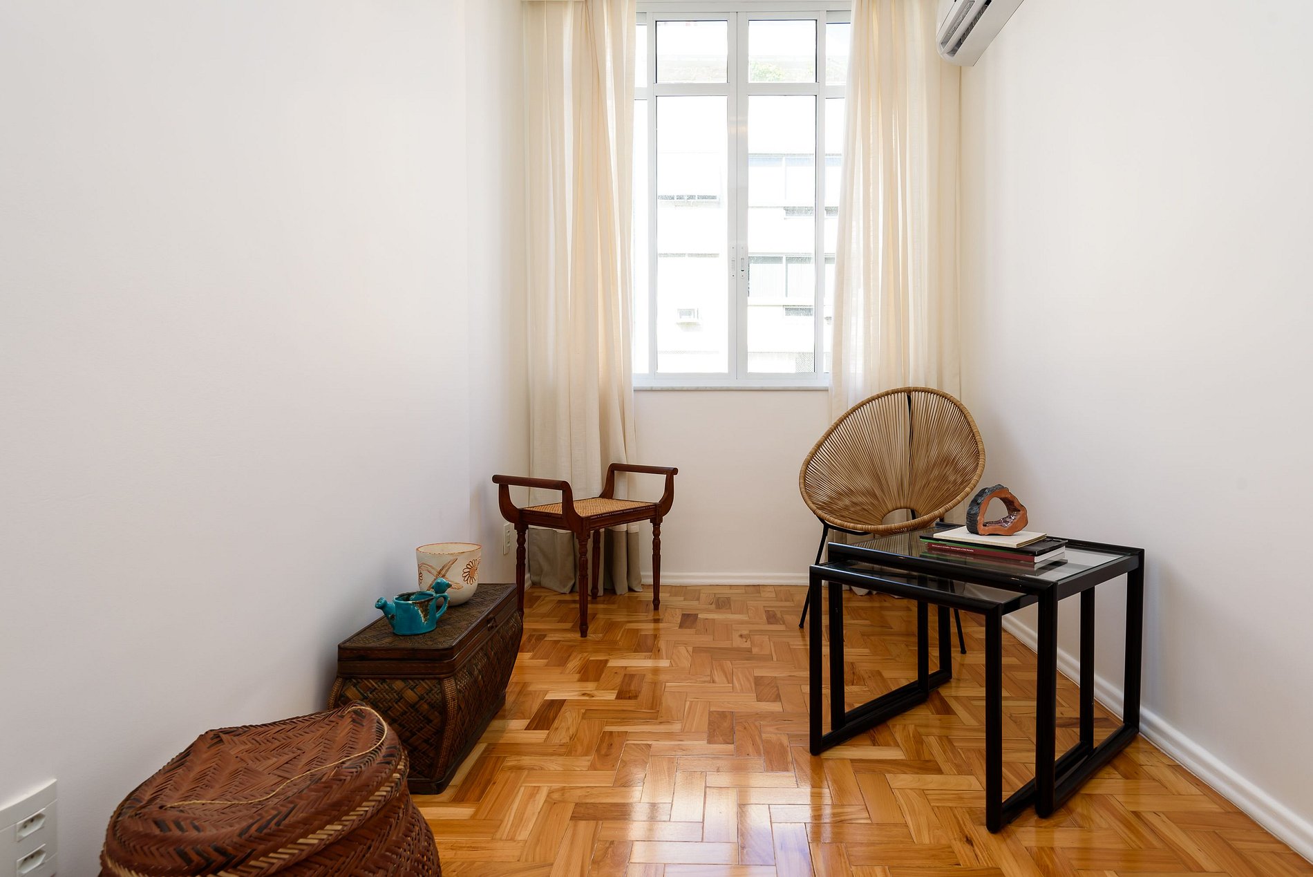 Large apartment in Copacabana, four blocks from the beach and close to the subway, with a large living room with Smart TV, a bedroom with two single beds and Smart TV, a complete bathroom and a toilet. Full kitchen, equipped with all the necessary utensils, with split air conditioning in the living room and bedroom.