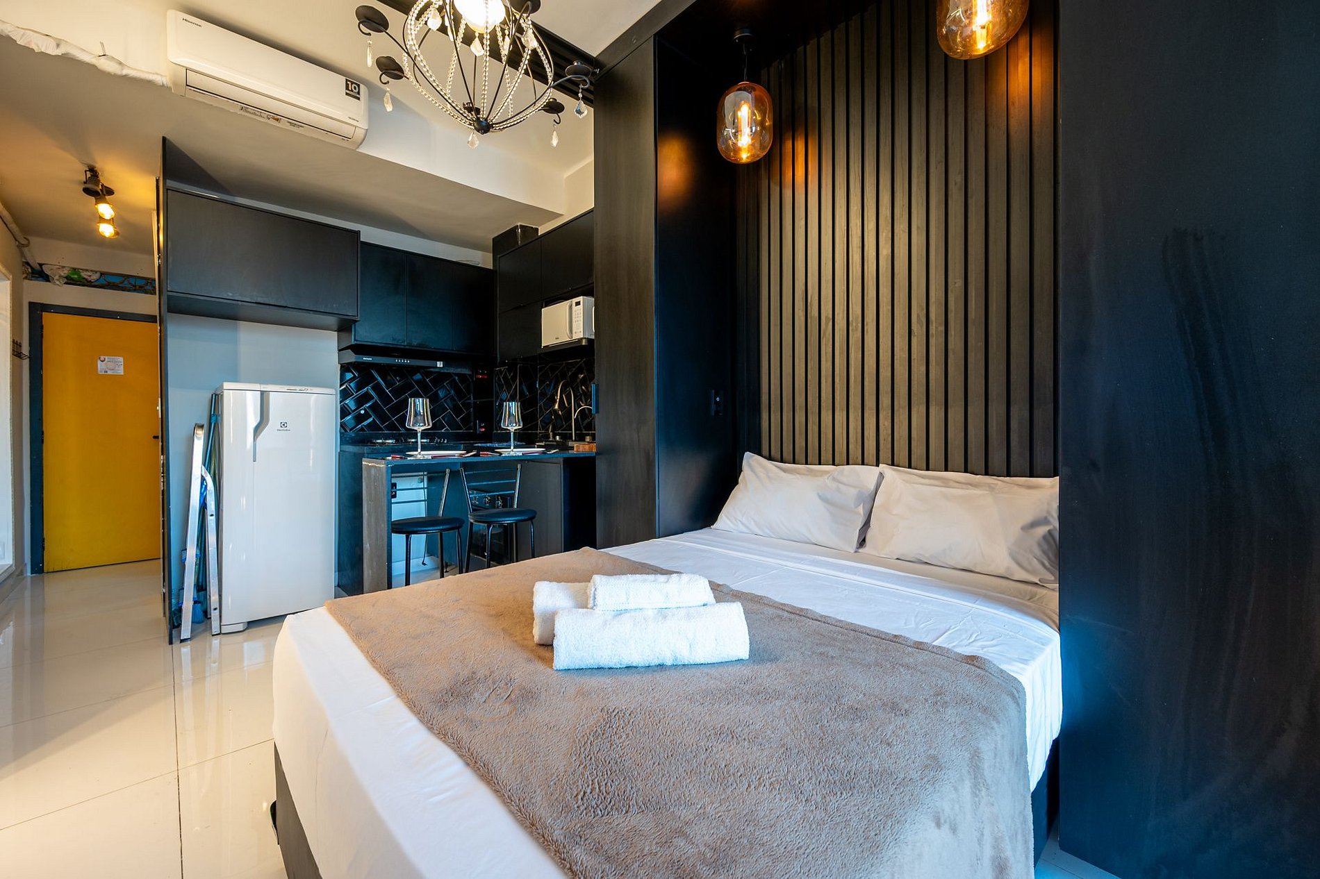 Modern studio in the heart of Lapa, Rio de Janeiro, perfect for those seeking comfort and style. The space features cozy decor, excellent natural lighting, and a beautiful city view. A private hot tub is the highlight, ideal for relaxing after a day exploring the area. Close to bars, restaurants, and the vibrant local nightlife, it's the ideal choice for an unforgettable stay.