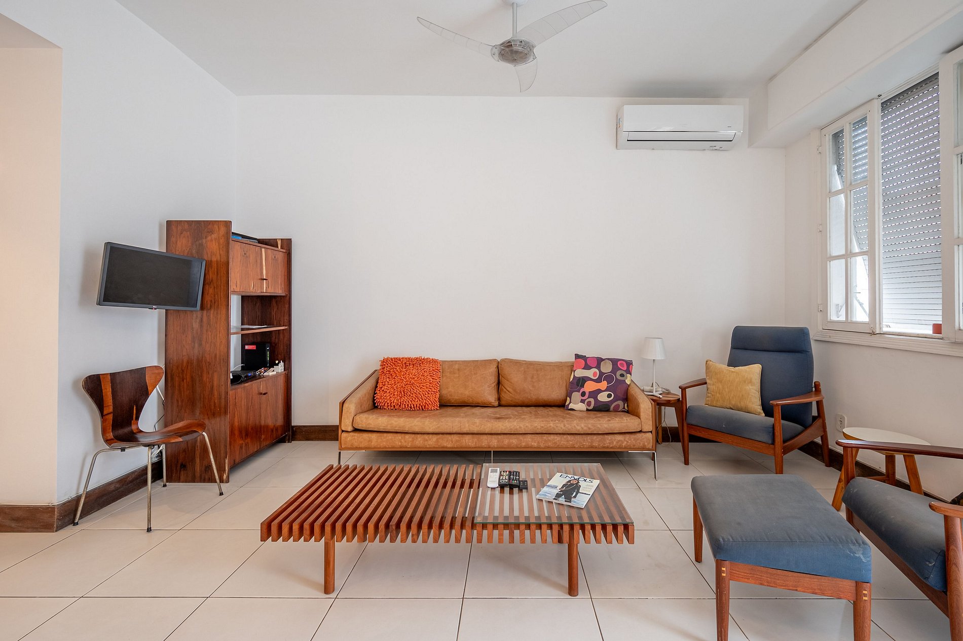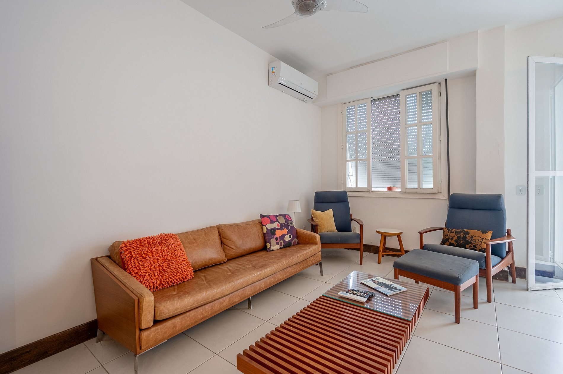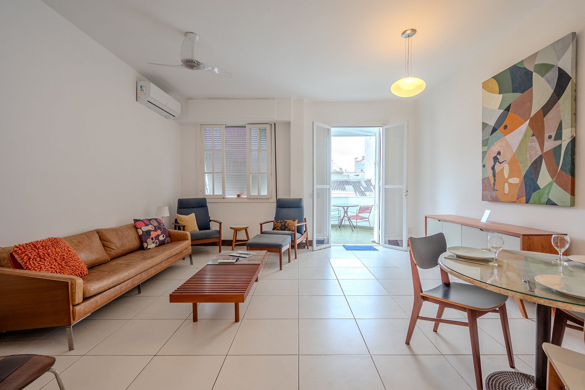 Apartment in Copacabana, just 1 block from post 4 on the beach. Spacious living room with balcony and side sea view, open-plan kitchen, cable TV, en-suite bedroom, air conditioning in all rooms.