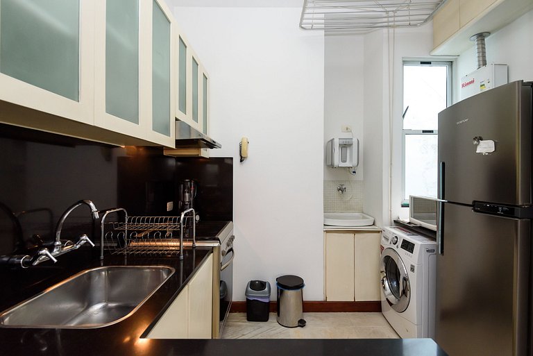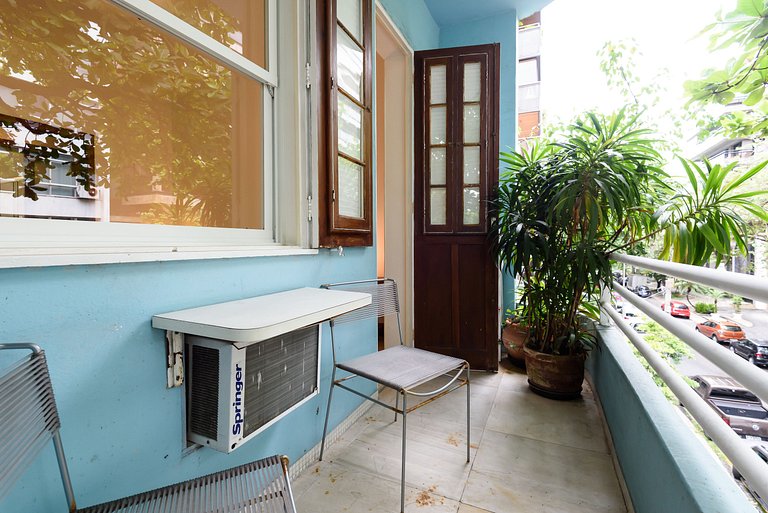 Relax in this calm and stylish space. Apartment in Ipanema, with a very cozy living room, 1 bedroom with suite with 2 showers, kitchen equipped with utensils and washing machine. With a super nice balcony with hammock and views of the treetops, close to the lagoon and the beach. Building without elevator, with 2 flights of stairs.