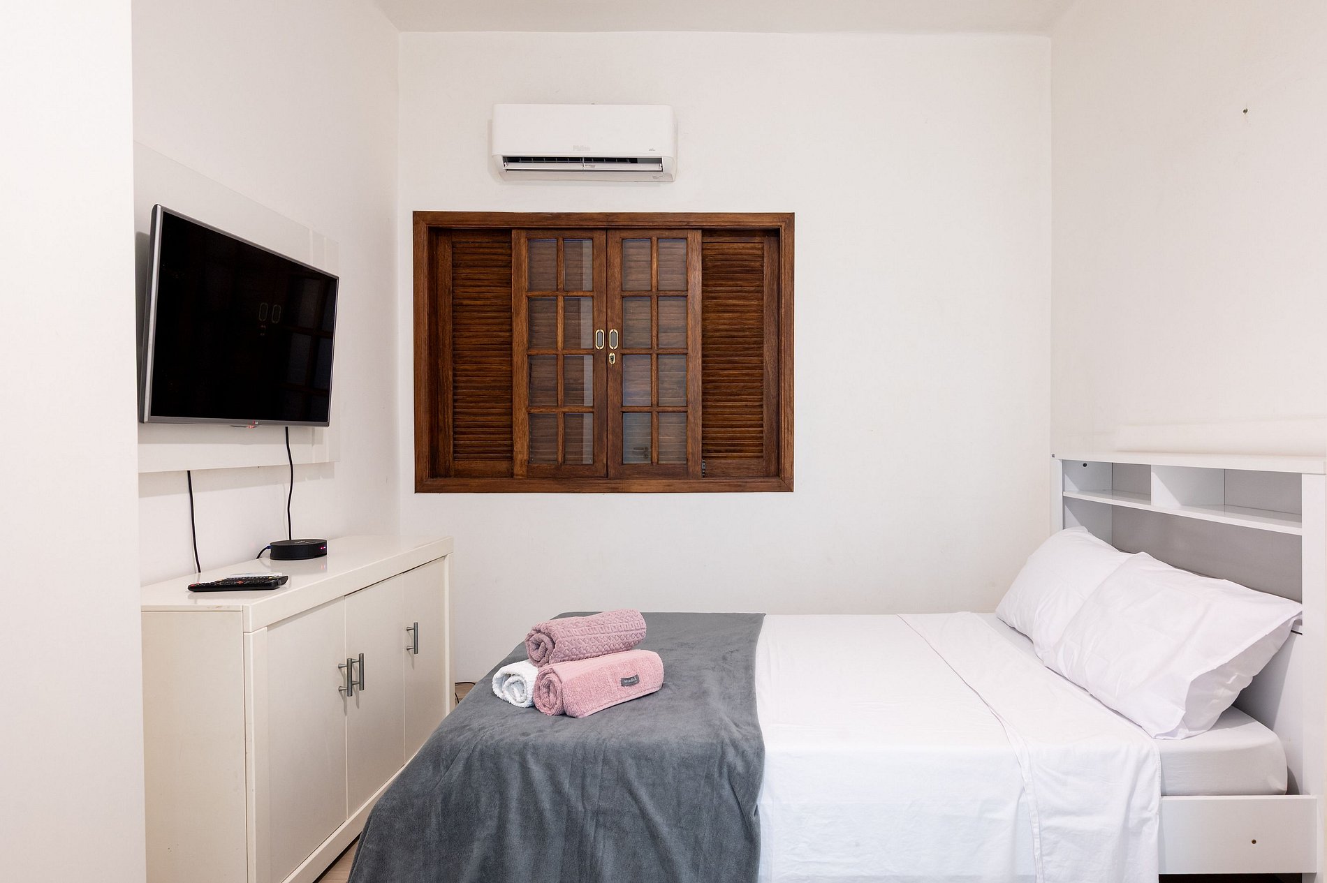Excellent house-style apartment with a very pleasant outdoor area with a rain shower, table with 4 chairs, living room with sofa that turns into a single bed with smart TV and wifi, equipped and super spacious kitchen with dining table, bedroom with large suite with 2 sinks, double bed, TV and ceiling fan and split air conditioning and another bedroom reversed with a single bed that closes and turns into a work space, and another full bathroom, apt with gas heating.