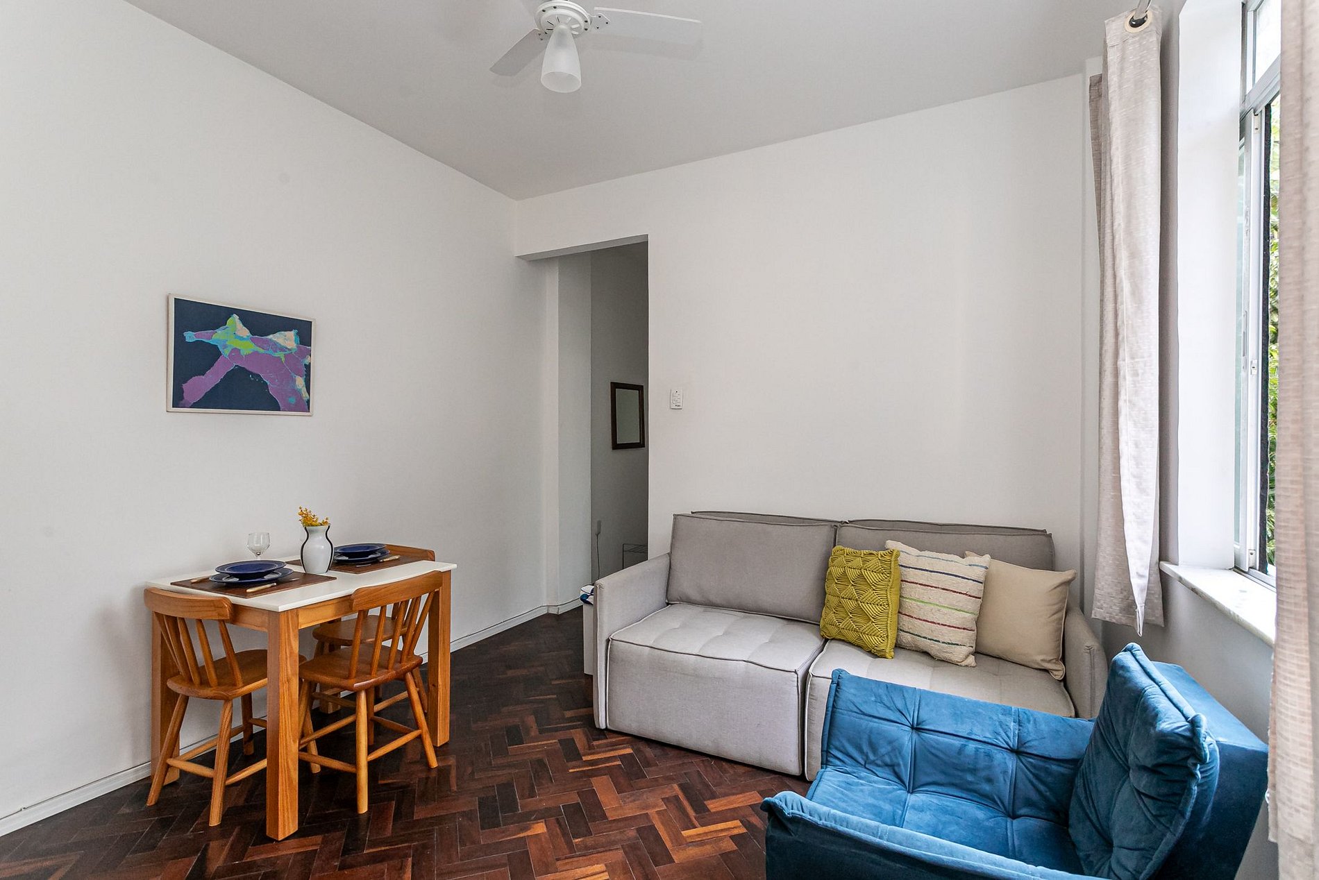 Charming apartment between Copacabana and Ipanema, with a green view, just a few minutes from the Copacabana and Ipanema beaches and close to the subway. Complete and comfortable, it has an air-conditioned bedroom, a living room, an equipped kitchen, a bathroom, and a balcony with a hammock to relax. Excellent location to enjoy the neighborhood, with easy access to bars, restaurants, and shops. Ultra-fast 350 Mbps connection