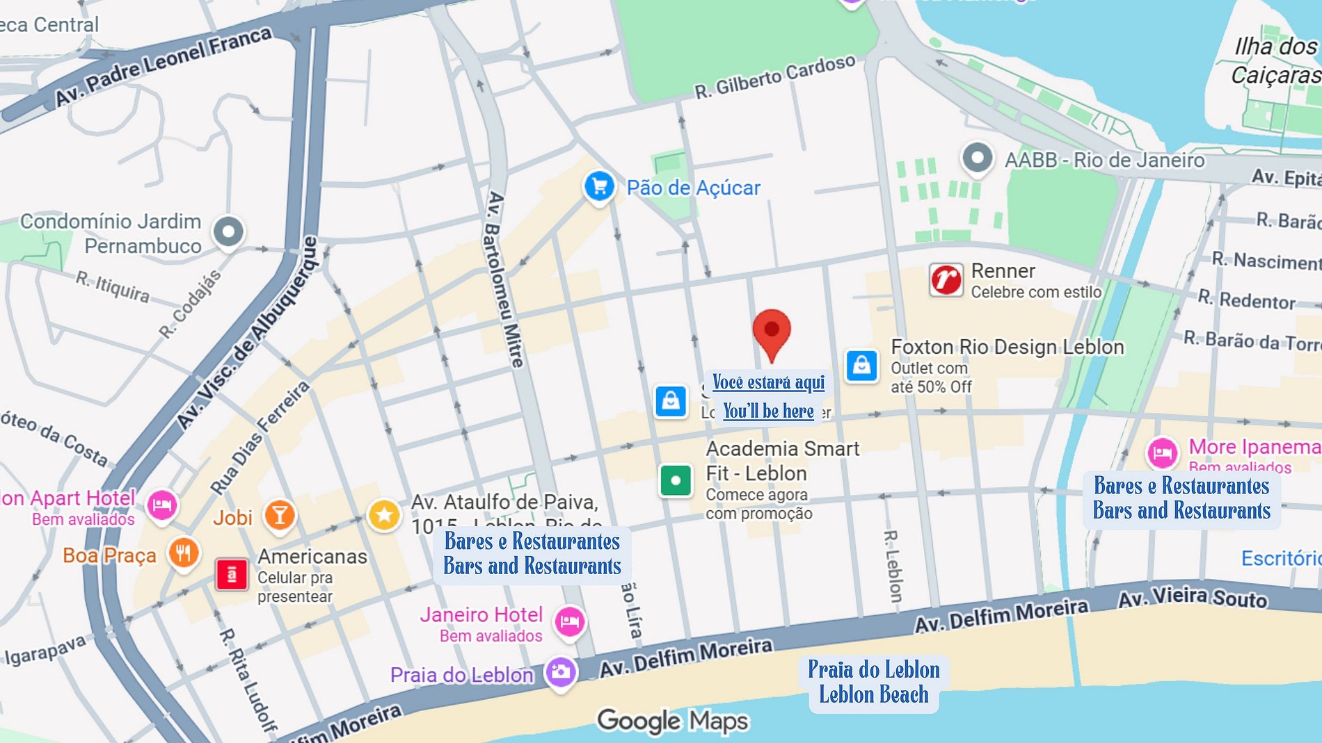 A dos cuadras de la Playa de Leblon, cerca del centro comercial