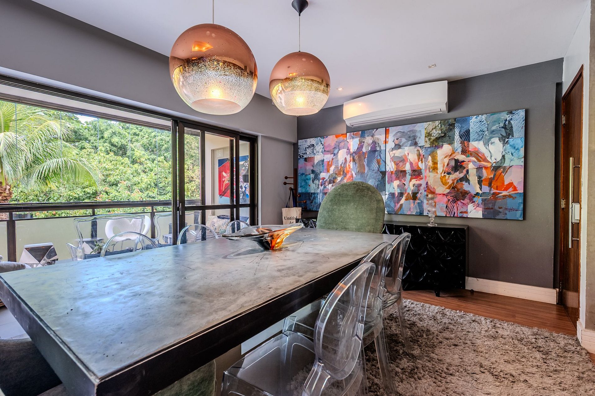 Amplio apartamento de 200 m² en Barra da Tijuca, a pocos pasos del metro Jardim Oceânico y de la playa. Cuenta con 4 habitaciones, una en suite, todas con armarios empotrados, sala amplia en dos ambientes, balcón espacioso y cocina con armarios y encimera. Muy luminoso y ventilado, con aire acondicionado, acepta mascotas y dispone de plaza de garaje fija. Zona segura y bien ubicada.