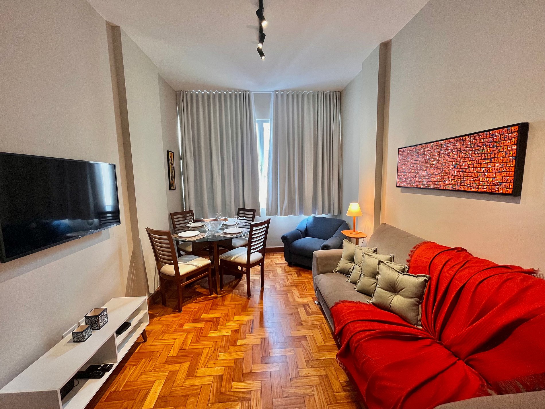 Apartamento cómodo y bien ubicado en Copacabana, a solo una cuadra de la playa y cerca del metro. Ideal para hasta 4 huéspedes, cuenta con aire acondicionado split, cocina equipada, Wi-Fi, Smart TV con Netflix y Amazon Prime, además de artículos esenciales como ropa de cama, toallas y productos básicos. Edificio con portería 24 h, ascensor y acceso seguro mediante cerradura electrónica.