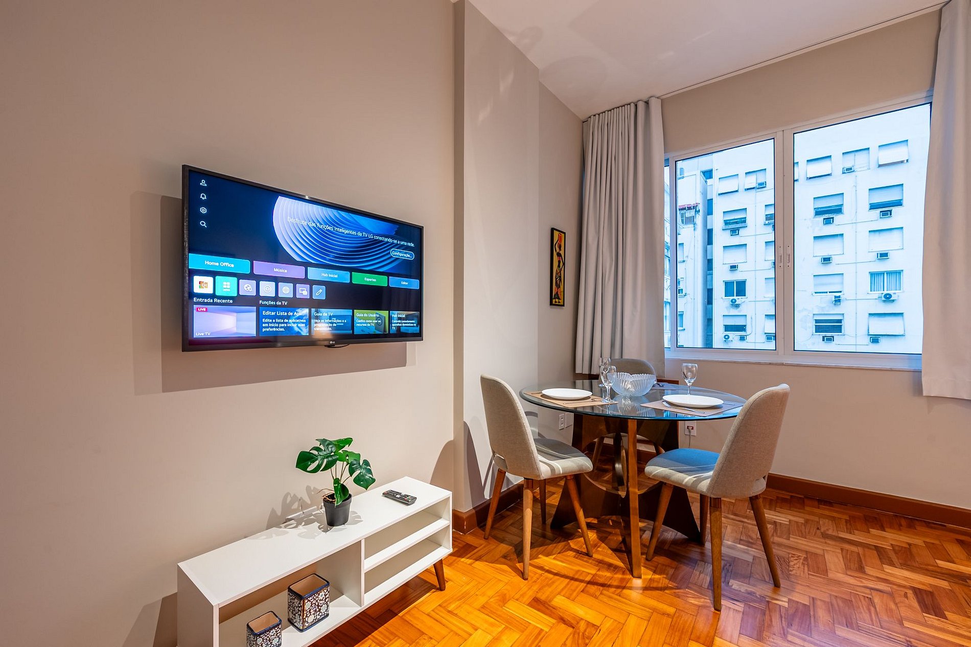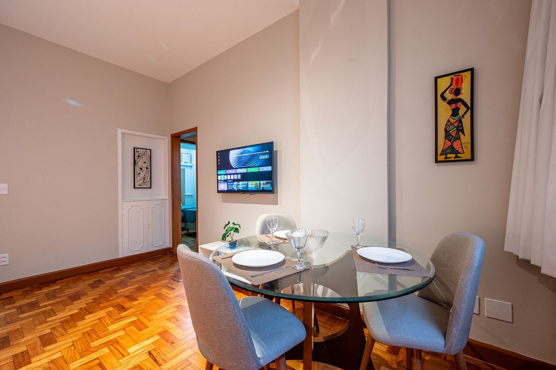 Apartamento cómodo y bien ubicado en Copacabana, a solo una cuadra de la playa y cerca del metro. Ideal para hasta 4 huéspedes, cuenta con aire acondicionado split, cocina equipada, Wi-Fi, Smart TV con Netflix y Amazon Prime, además de artículos esenciales como ropa de cama, toallas y productos básicos. Edificio con portería 24 h, ascensor y acceso seguro mediante cerradura electrónica.