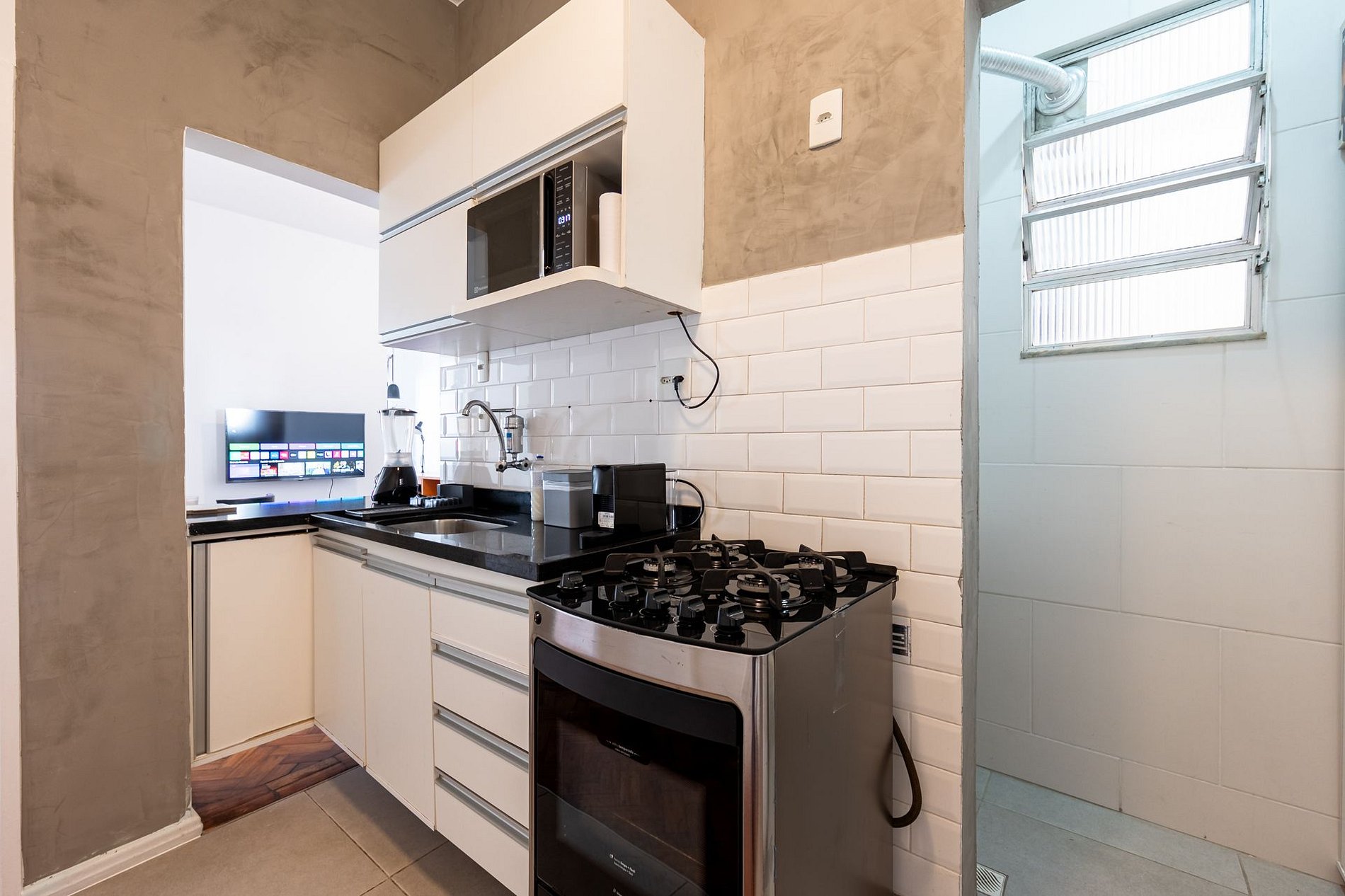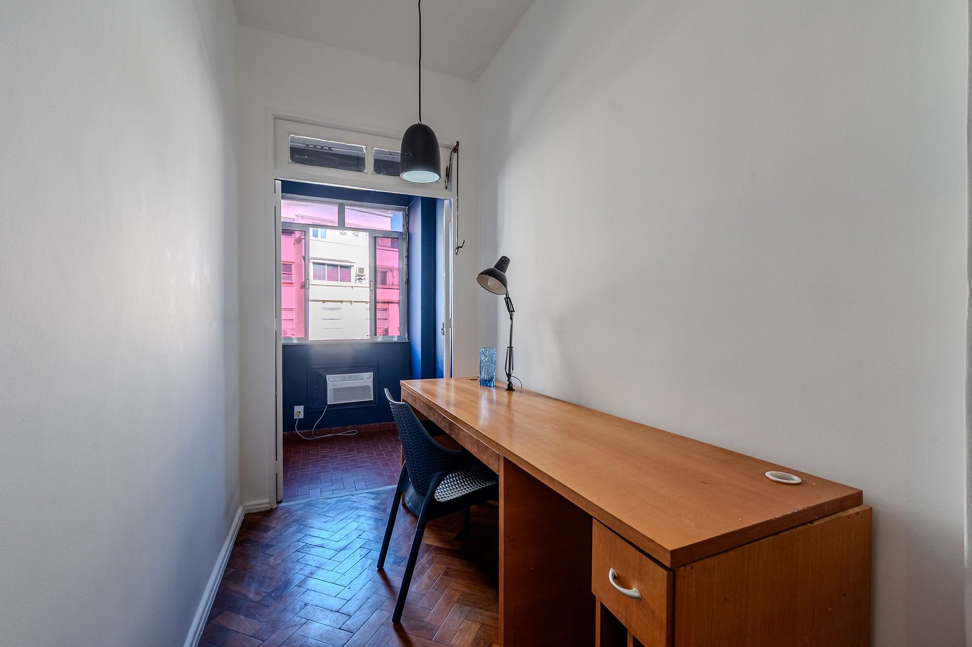 Apartamento de un dormitorio en Copacabana, ideal para quienes buscan confort, practicidad y excelente ubicación. El inmueble es alto, silencioso y bien iluminado, perfecto para descansar o trabajar de forma remota. Cuenta con cocina equipada, sala cómoda con TV smart, espacio tipo oficina, dormitorio con aire acondicionado y baño moderno. Cerca de la playa, restaurantes, bares y transporte público, ofreciendo una estadía práctica y agradable en Río de Janeiro.