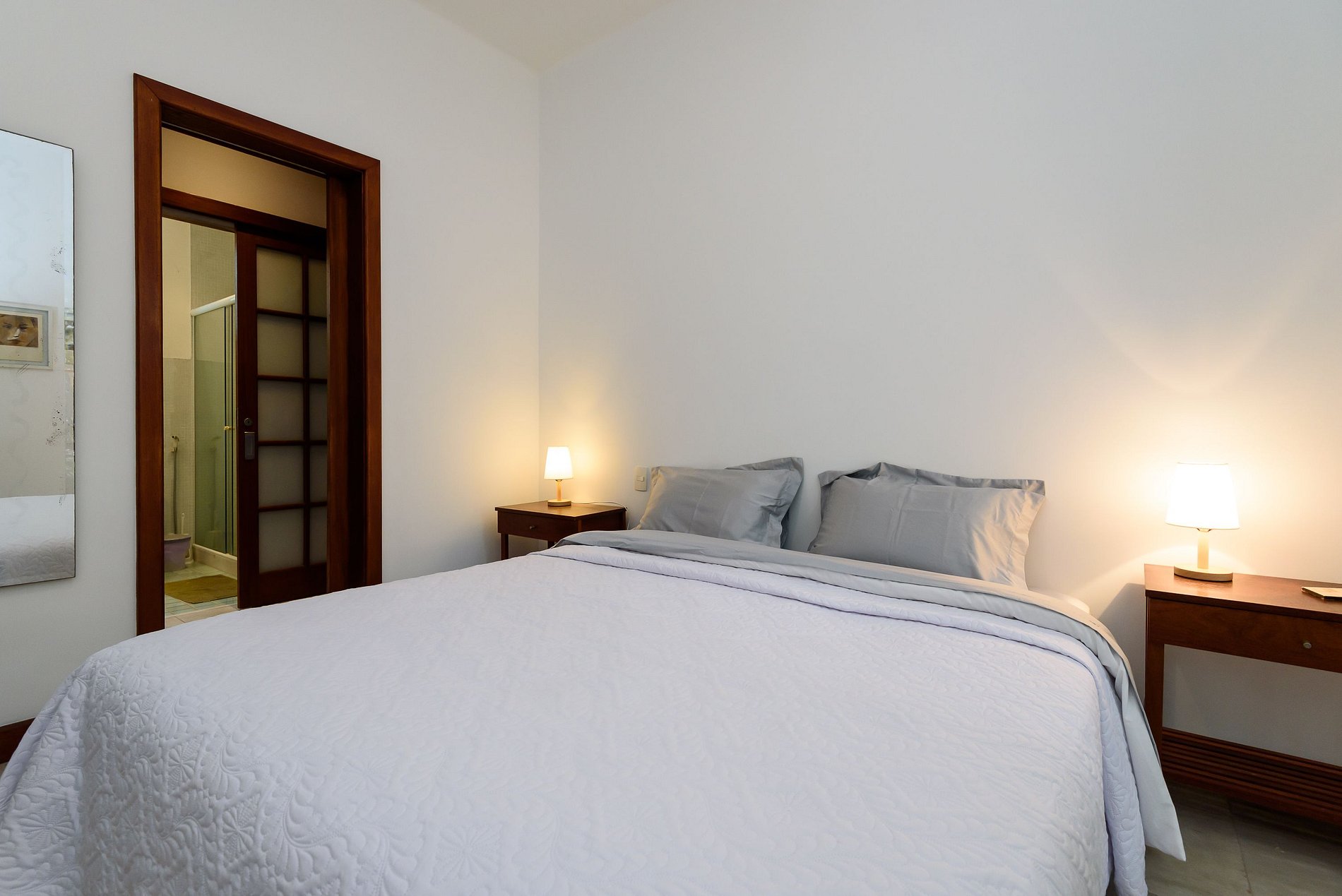 Relájese en este espacio tranquilo y elegante. Apartamento en Ipanema, con salón muy acogedor, 1 dormitorio con suite con 2 duchas, cocina equipada con utensilios y lavadora. Con un balcón súper lindo con hamaca y vista a las copas de los árboles, cerca de la laguna y de la playa. Edificio sin ascensor, con 2 tramos de escaleras.