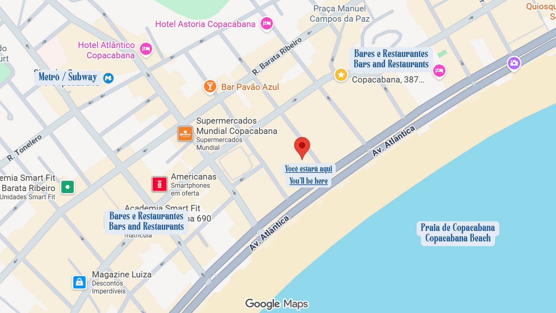A solo 50 metros de la Playa de Copacabana, una de las más famosas del mundo, perfecta para caminar, tomar el sol y practicar deportes al aire libre.