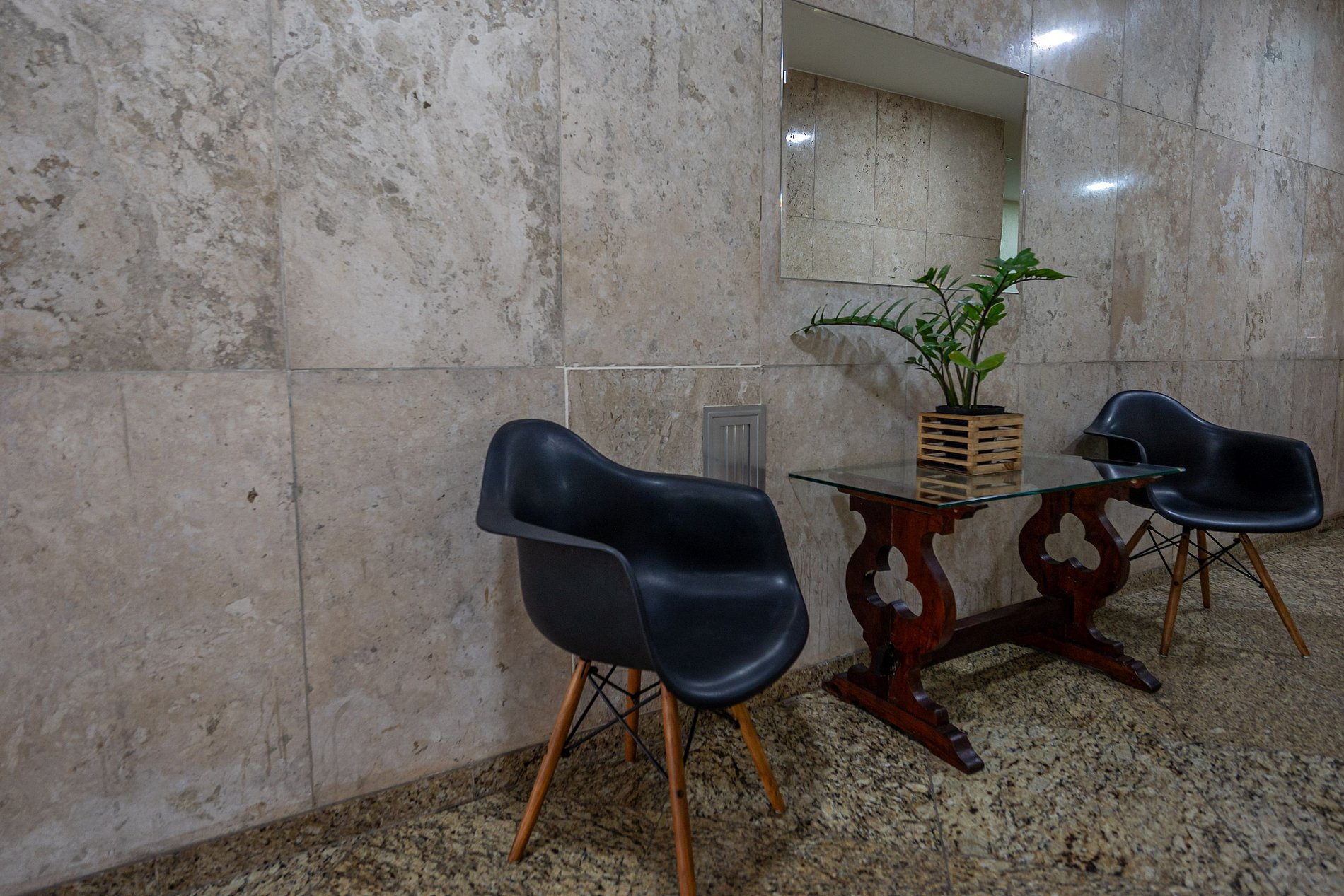 El espacio está al lado del metro de Botafogo y paradas de autobús. Ni siquiera necesitas cruzar la calle para acceder al metro. Hay estacionamiento giratorio frente al edificio.