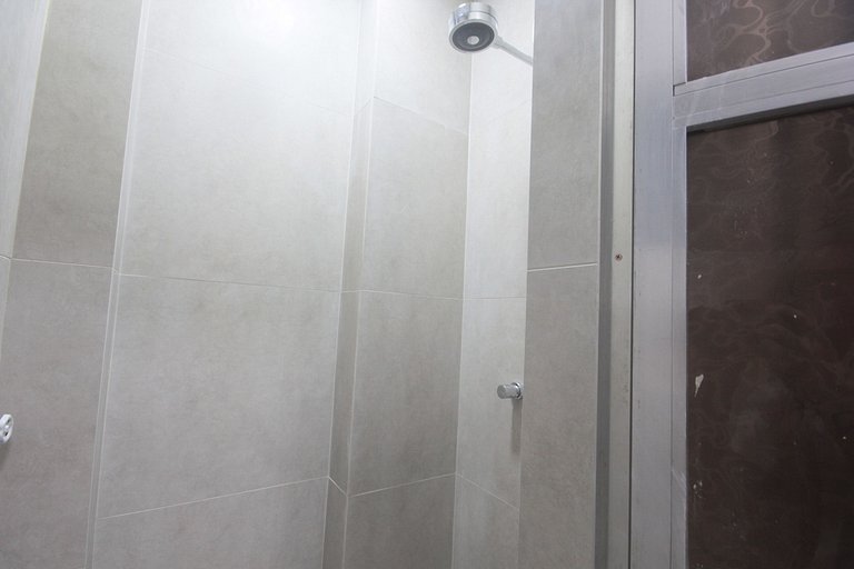 Possui um pequeno quarto com uma cama de solteiro, que pode ser fechada virando um espaço de escrivaninha para trabalho e ventilador de teto.
