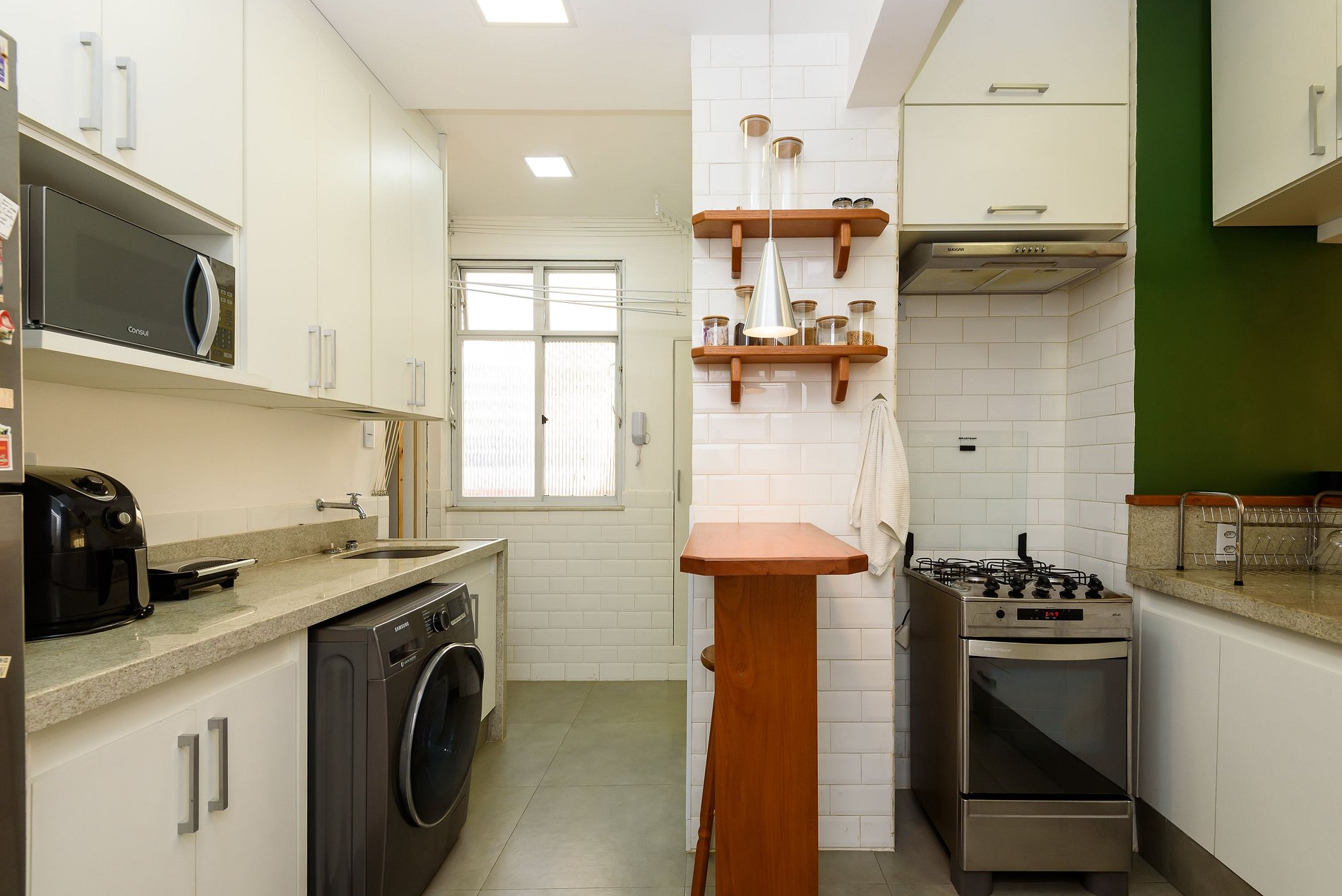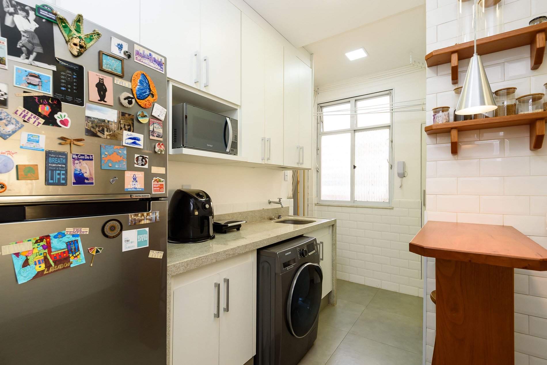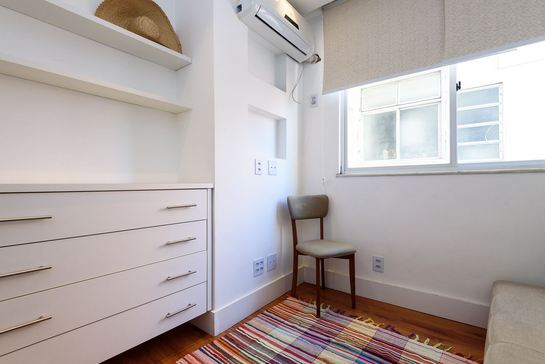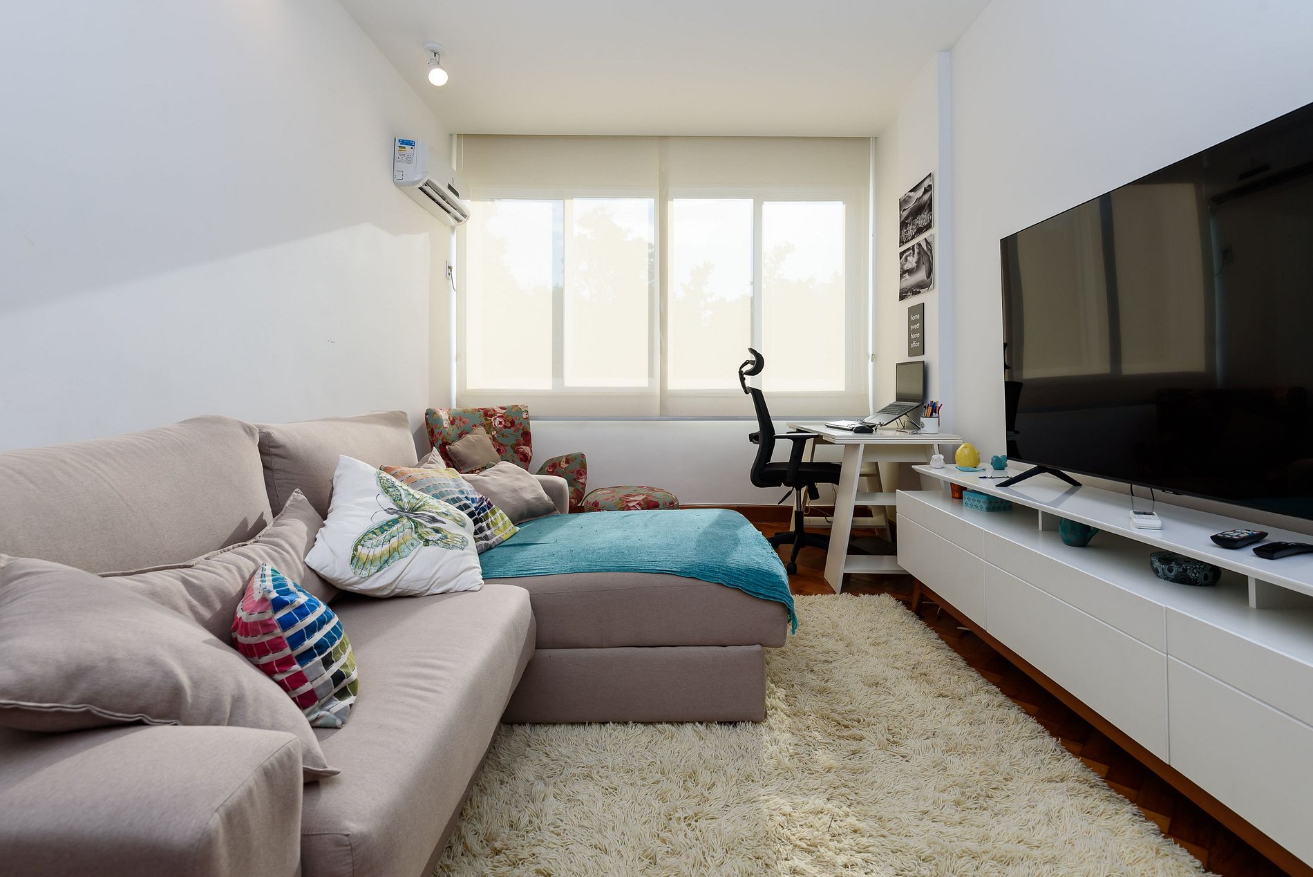 Apartamento arejado e iluminado no Leblon, com uma charmosa e agradável decoração para relaxar e aproveitar a estadia em uma sala super aconchegante com TV smart e sofá retrátil, cozinha americana integrada com a sala e equipada com todos os utensílios básicos e máquina lava e seca, um quarto com cama de casal e outro com sofá cama de casal, ar condicionado split nos ambientes, possui 2 banheiros sendo 1 completo e um de serviço.