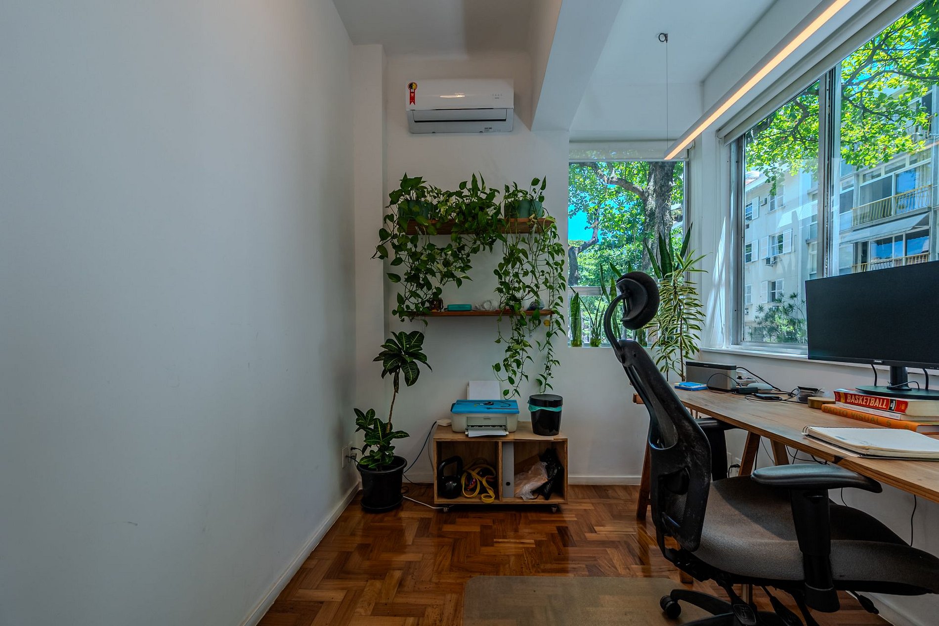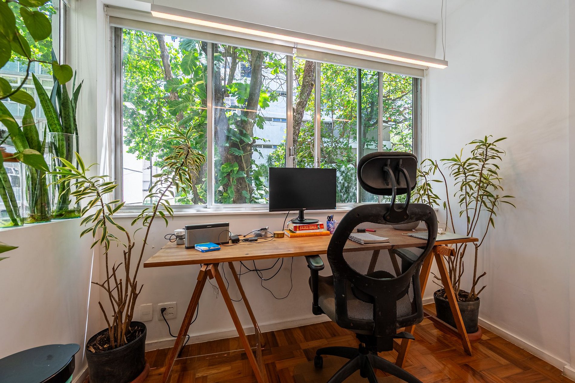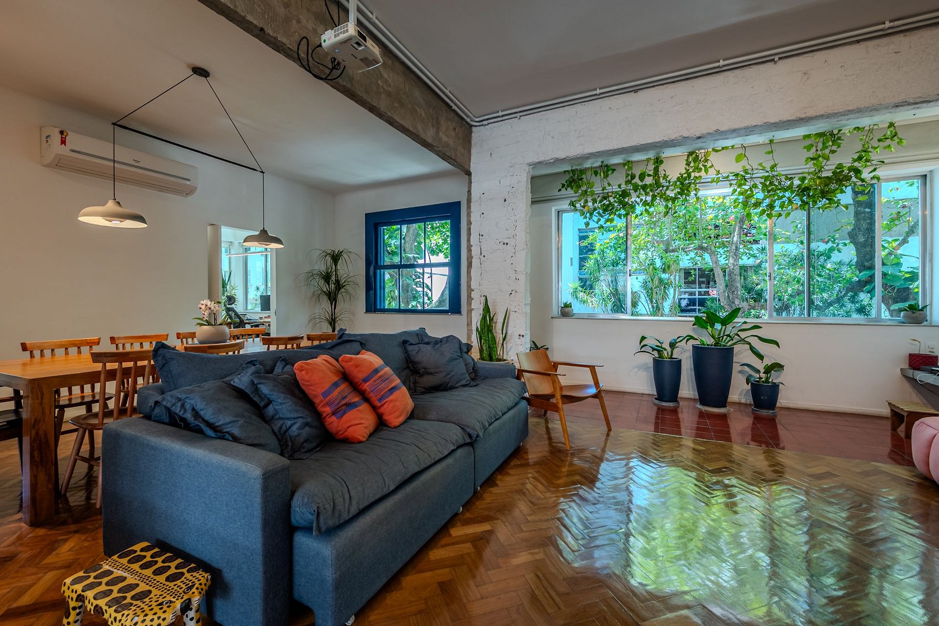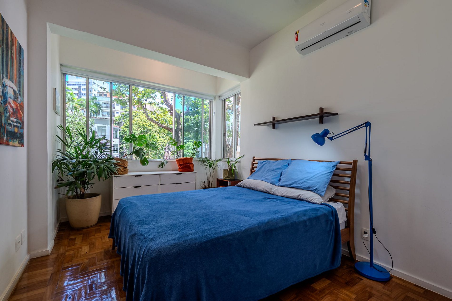 Apartamento amplo, elegante e reformado no coração do Leblon, na General Artigas. A poucos passos do metrô, Praia do Leblon e Rua Dias Ferreira. Ideal para famílias: 3 quartos, 7 camas, sala integrada à cozinha, espaço de trabalho e muita luz natural. Ambiente fresco, cercado de plantas e com vista para um dossel de árvores, incluindo tucanos visitantes!