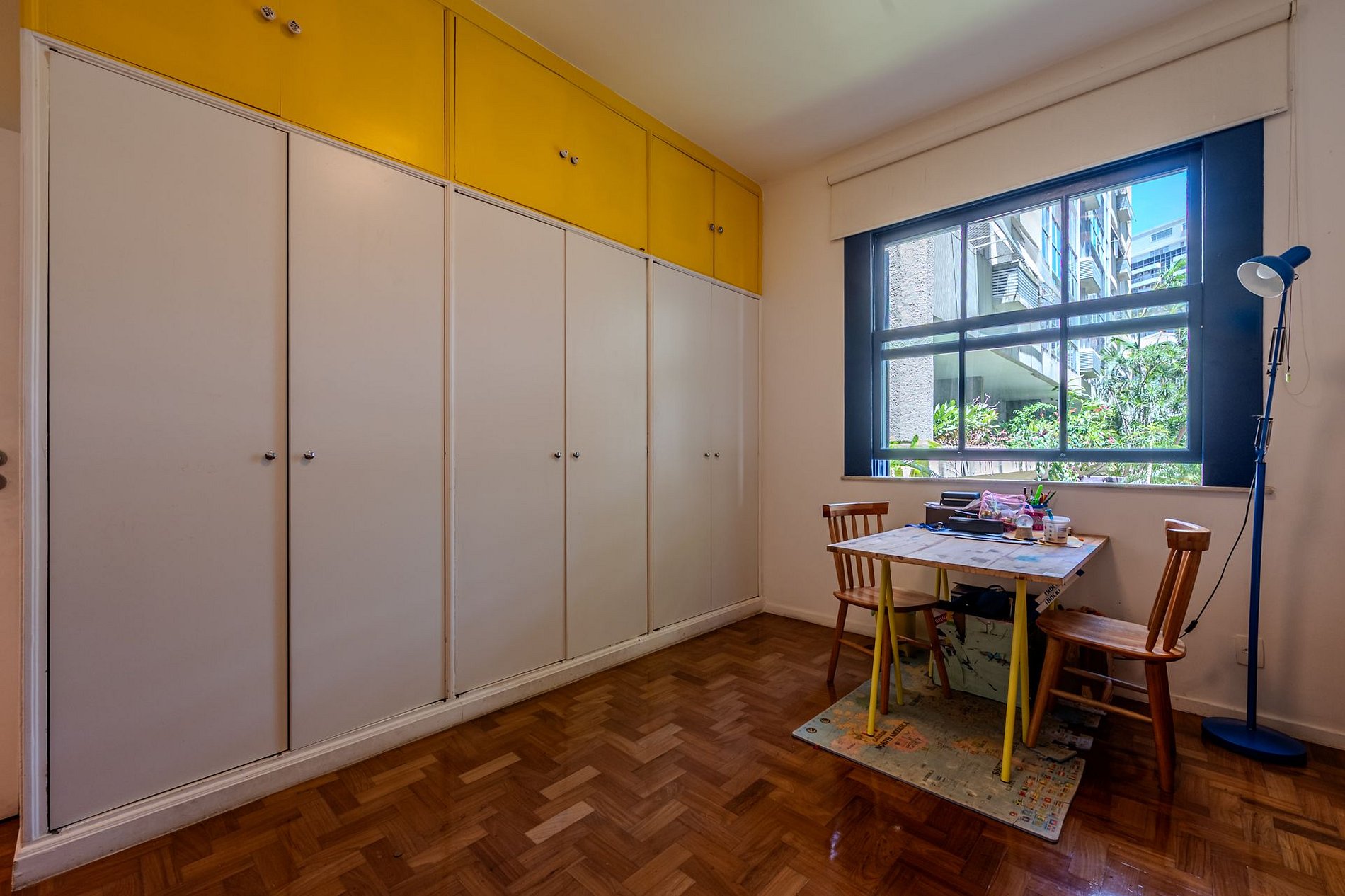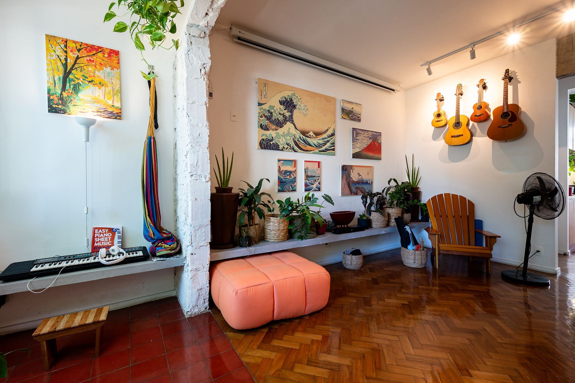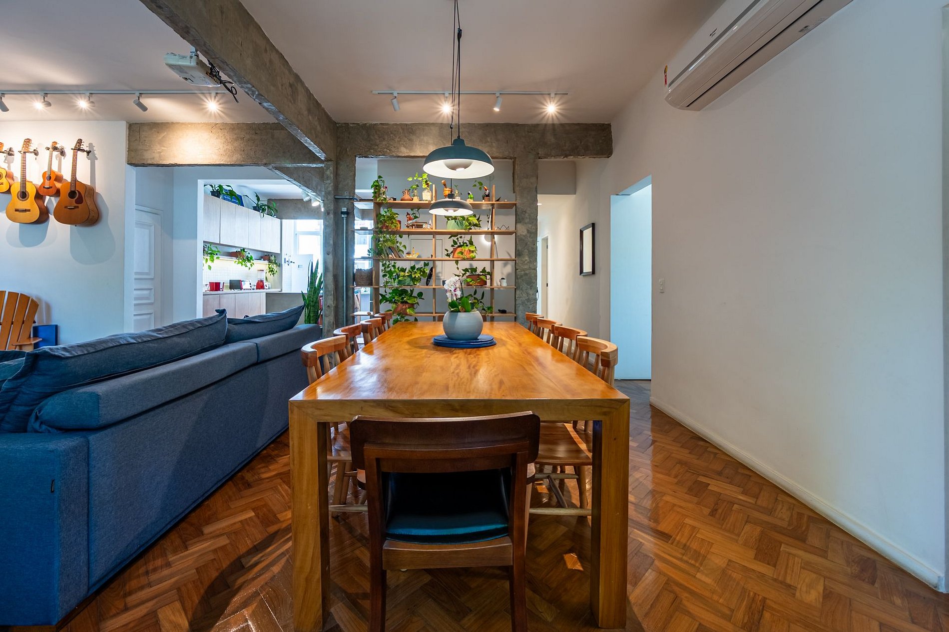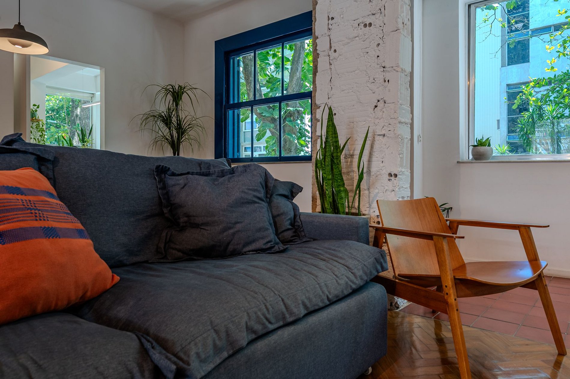 Apartamento amplo, elegante e reformado no coração do Leblon, na General Artigas. A poucos passos do metrô, Praia do Leblon e Rua Dias Ferreira. Ideal para famílias: 3 quartos, 7 camas, sala integrada à cozinha, espaço de trabalho e muita luz natural. Ambiente fresco, cercado de plantas e com vista para um dossel de árvores, incluindo tucanos visitantes!