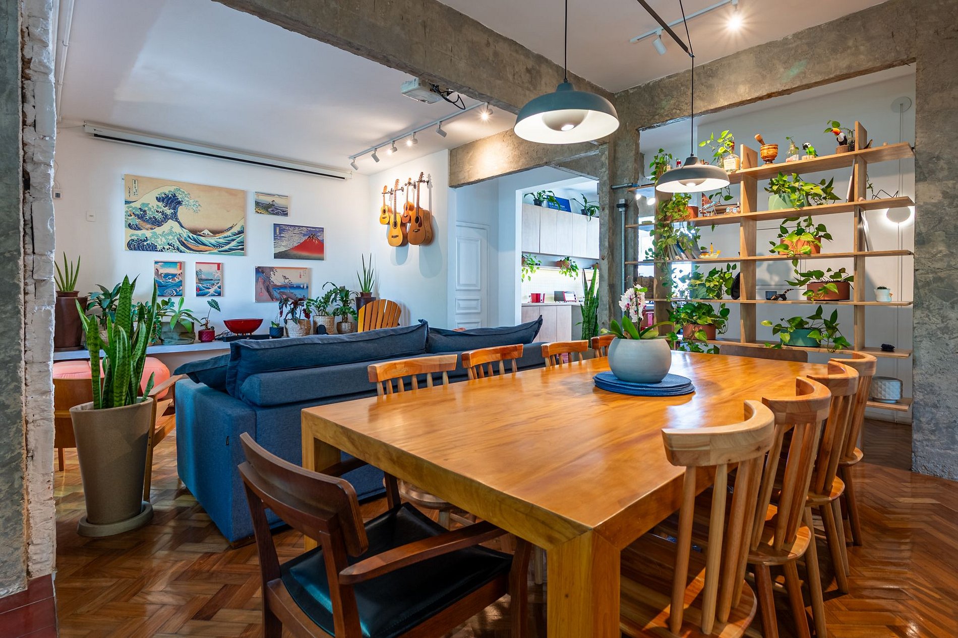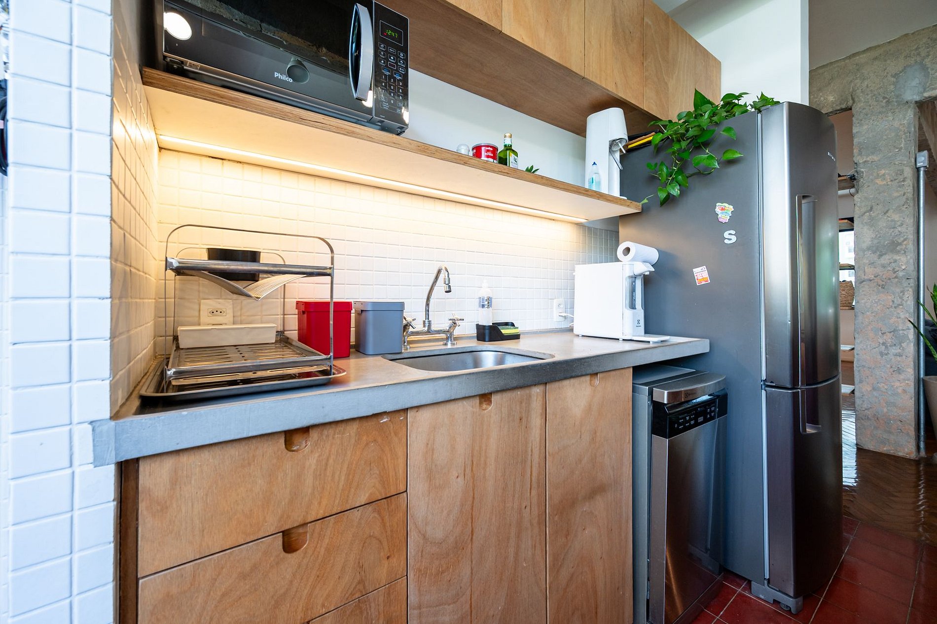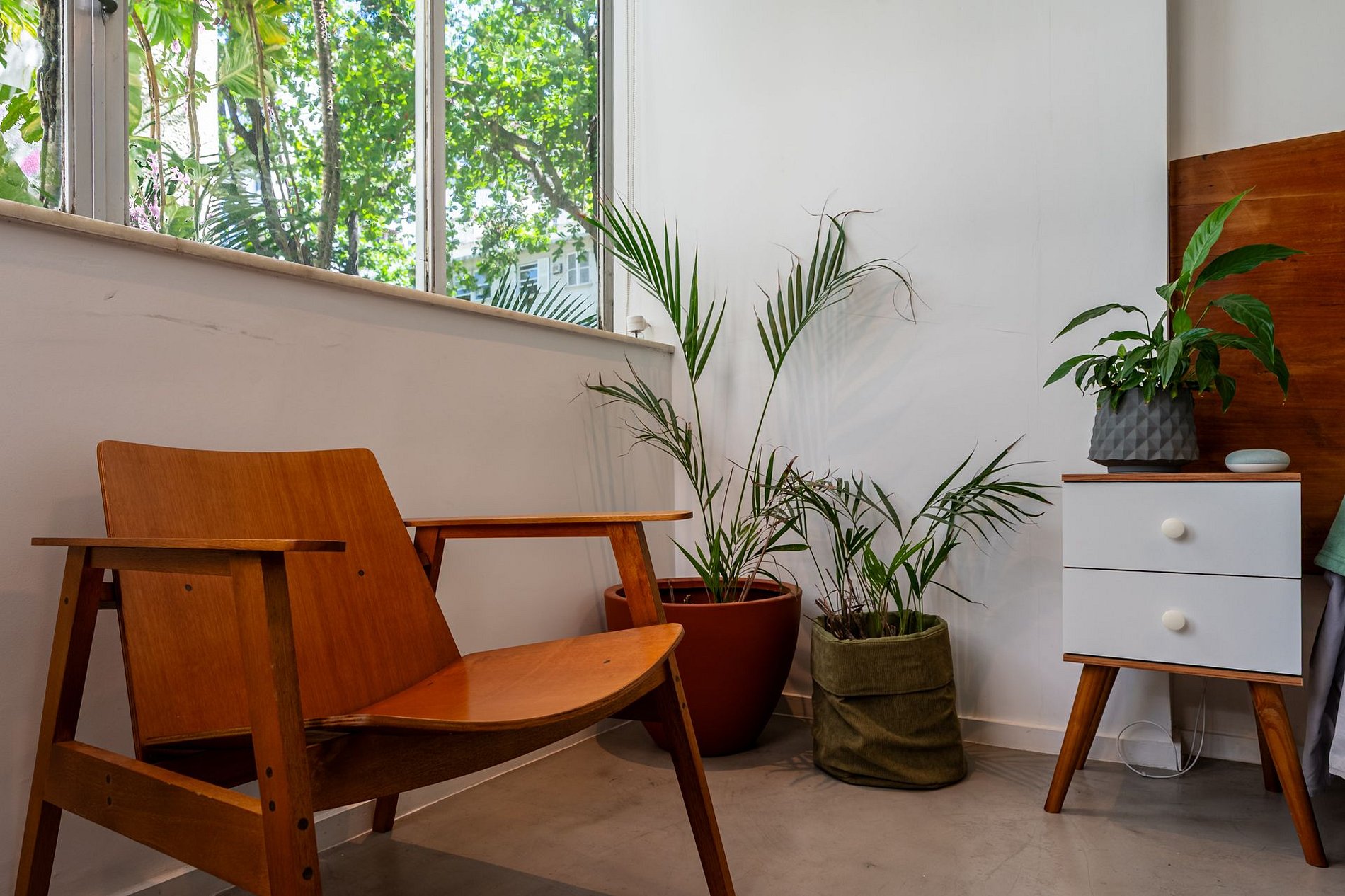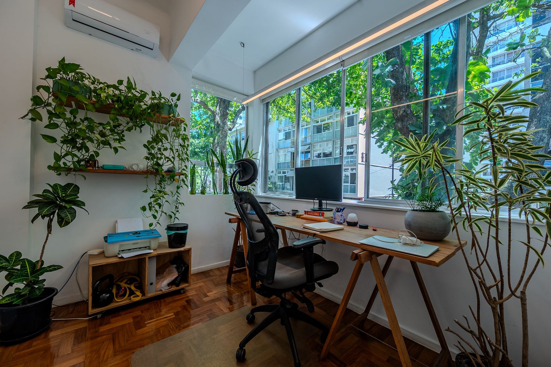 O grande diferencial do espaço é a atmosfera acolhedora e verde: plantas por todos os ambientes e janelas amplas com vista para as copas das árvores — onde uma família de tucanos costuma aparecer! A sala espaçosa integra-se à cozinha com ilha, criando um ambiente perfeito para convivência. A mesa de jantar acomoda até 10 pessoas. Quartos com armários embutidos e mobiliário confortável. Dois banheiros completos e um escritório que pode virar dormitório com colchão inflável.