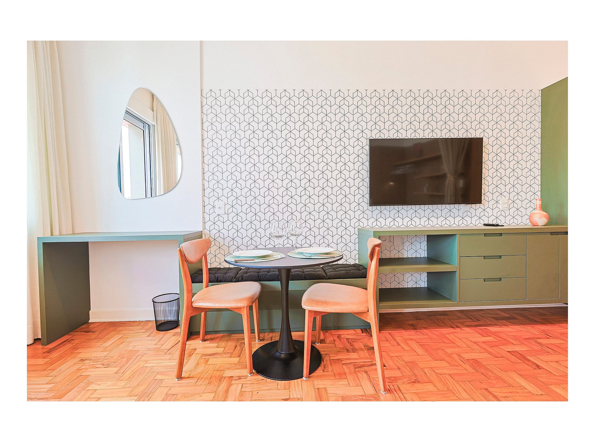 * Mesa de jantar que também pode ser utilizada para home office.
