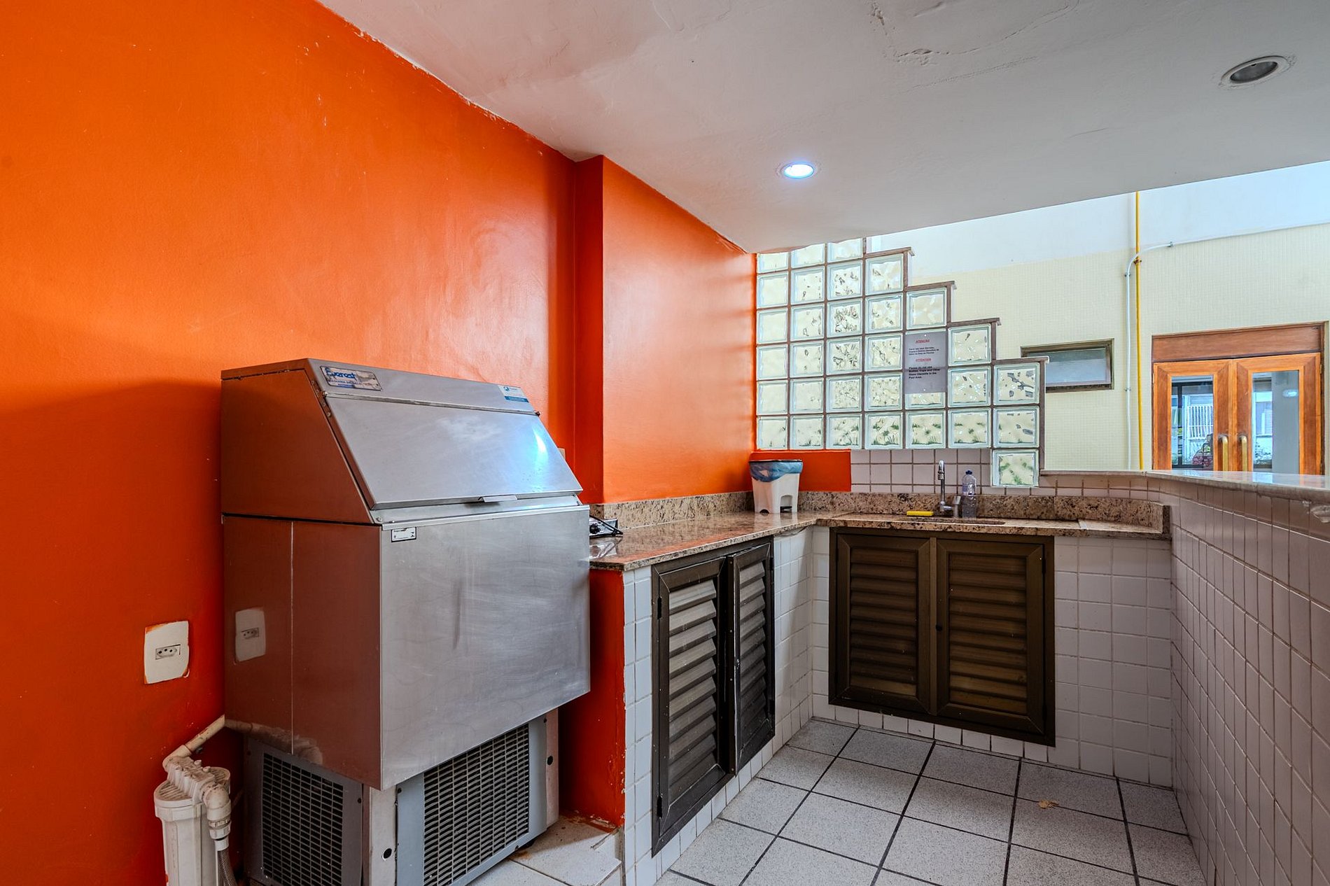 Também há uma área gourmet com churrasqueira e máquina de gelo, ideal para momentos de lazer.