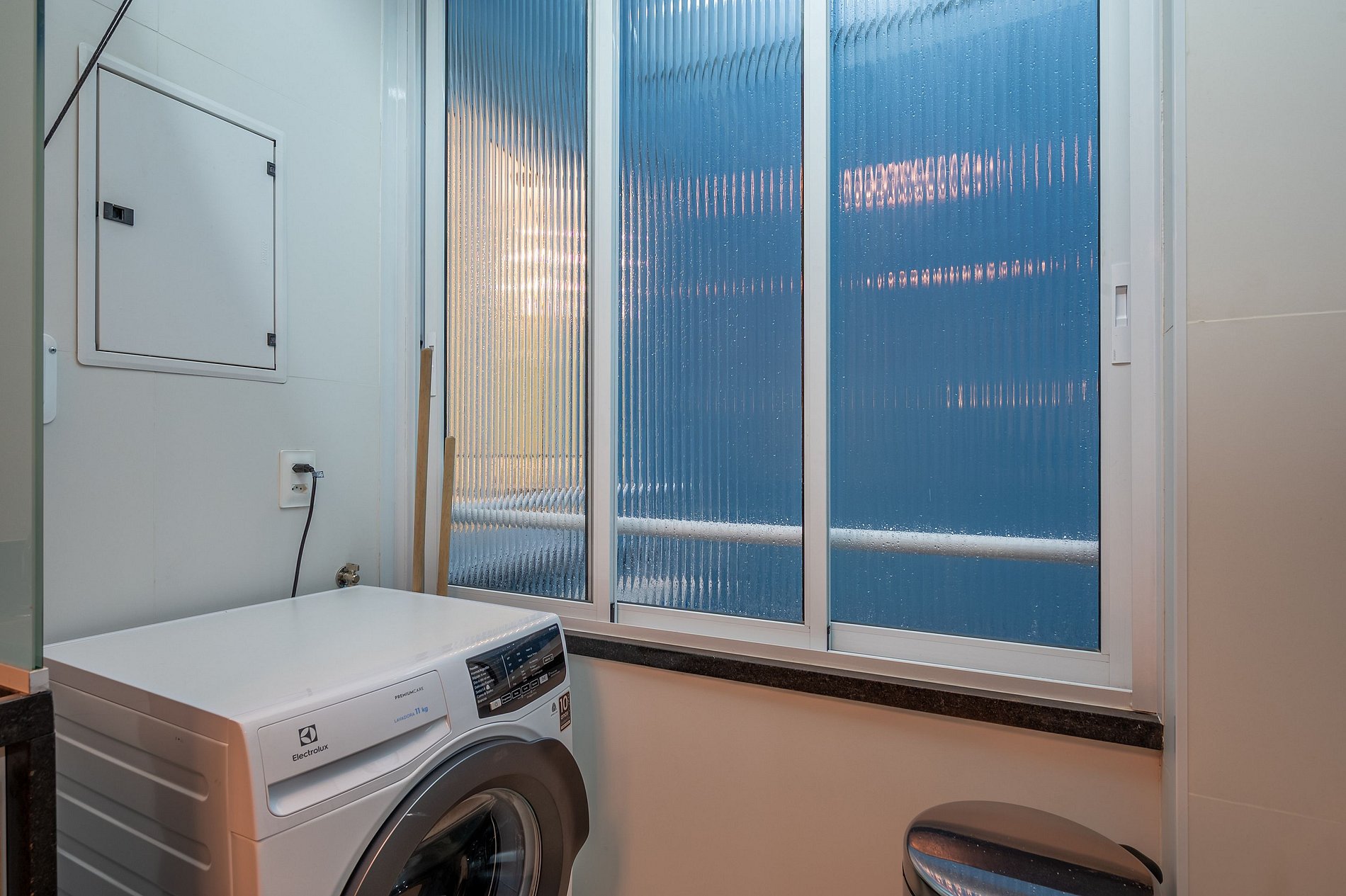 A cozinha é totalmente equipada, e ainda há uma máquina de lavar e secar na área de serviço.
