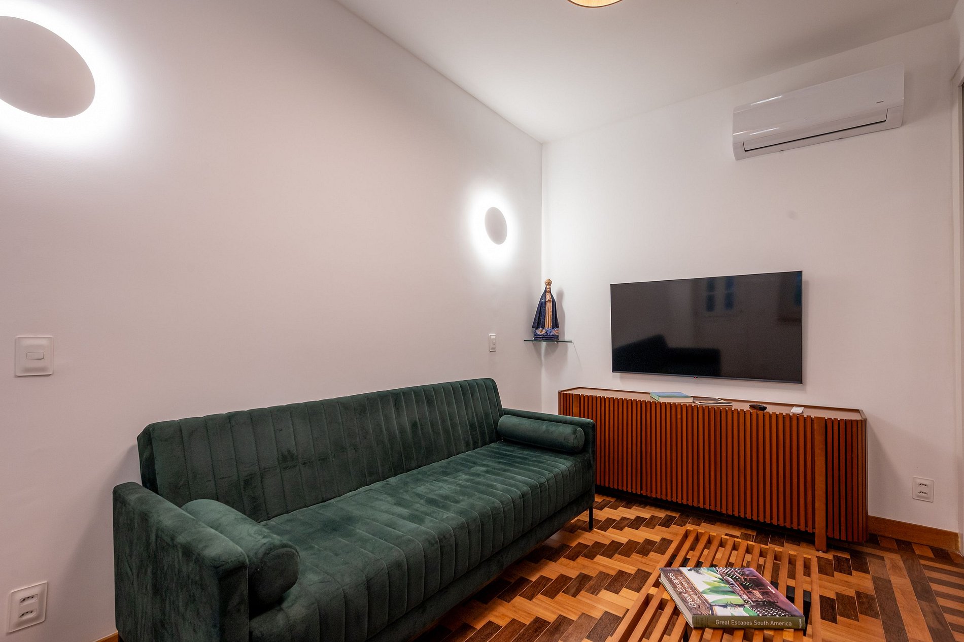 Sala de Estar com porta de correr que vira quarto, com sofá-cama.