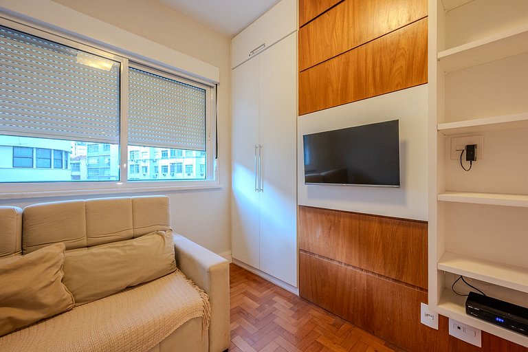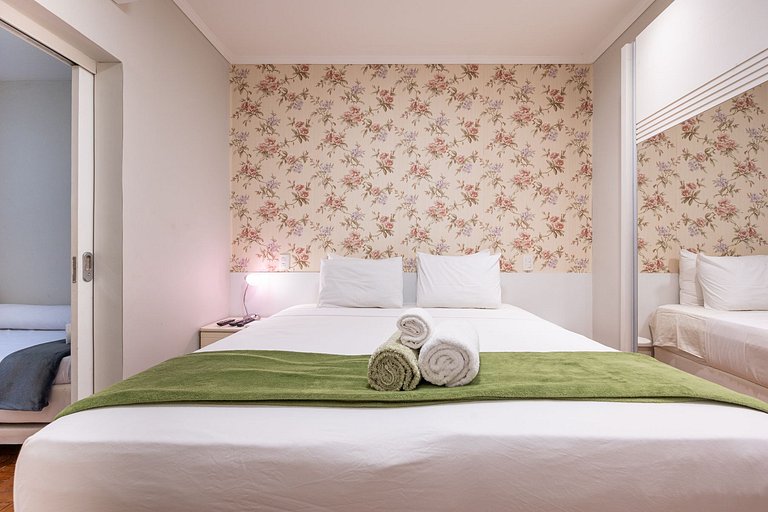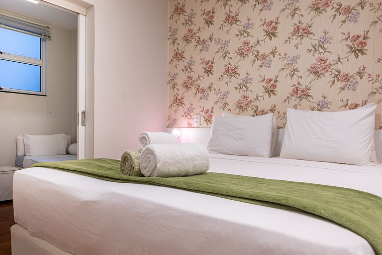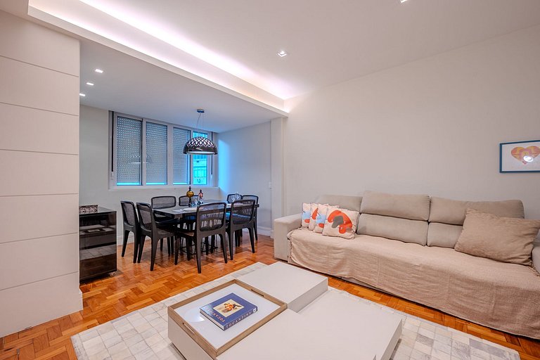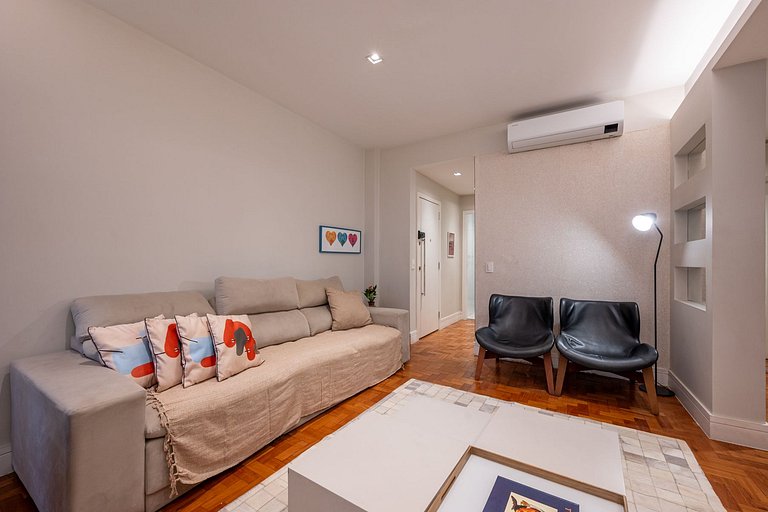 Apartamento mobiliado em Ipanema, ideal para famílias ou grupos de até 6 pessoas.