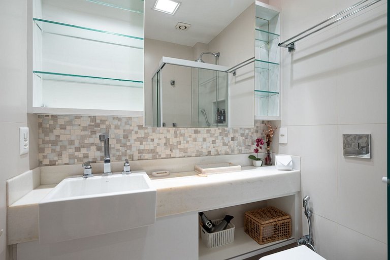 A localização em Ipanema, a poucos passos da praia, aliada a um apartamento espaçoso, confortável e totalmente equipado, faz dele ideal para famílias e grupos. Destaque para a suíte com espaço de trabalho, sala ampla e cozinha completa — tudo pensado para uma estadia prática e acolhedora.