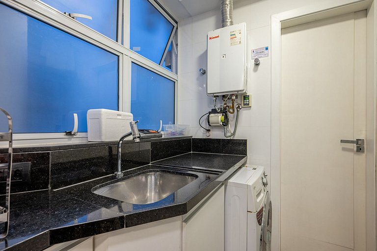 Excelente equipamiento en todo el apartamento. El filtro de agua es un plus. Solo estar pendiente del tema de la lavadora y el baño de servicio debería tener toallas, por lo demás es excelente.