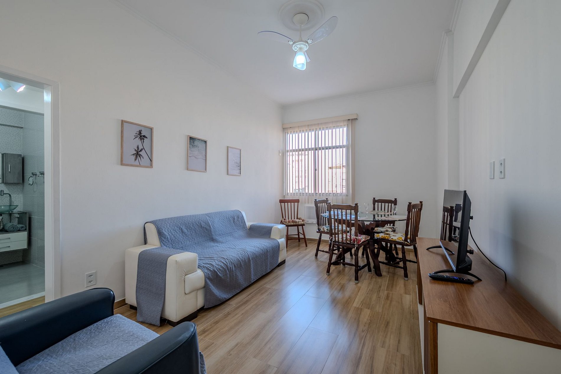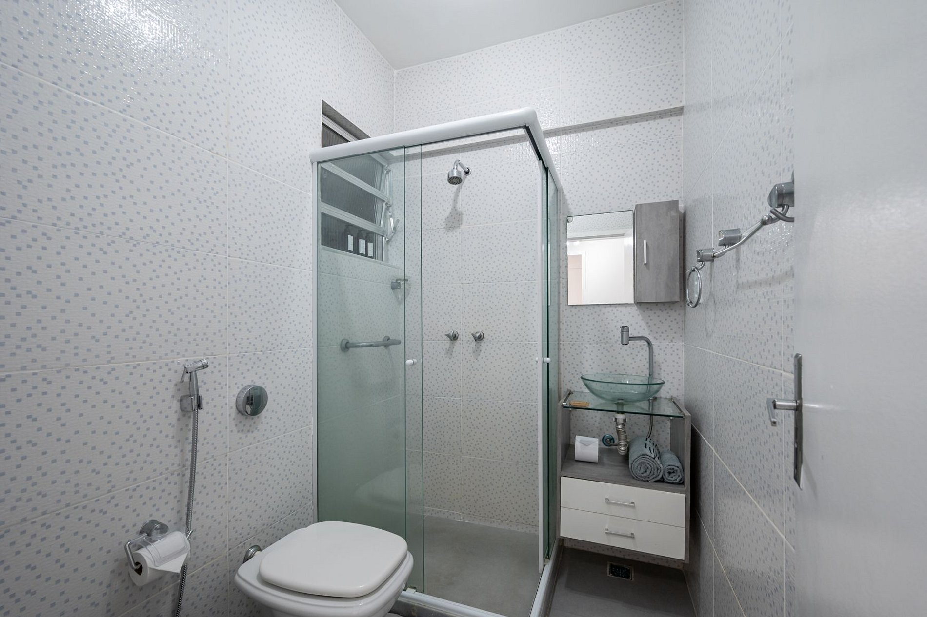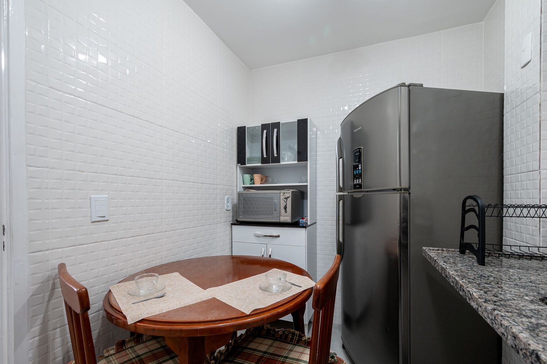 Nuestra estadía de 5 noches en el departamento fue excelente. La comunicación luego de la reserva fue por wtsp, siempre rápida, amable y clara. El edificio se ubica en una zona muy segura y tranquila, con presencia policial constante que da aún más tranquilidad. Se accede por un shopping con supermercado, restoranes, lavandería y todo lo necesario para el día a día. Está cerca de la playa de Copacabana, posto 4. El living-comedor es amplio, limpio y cómodo, con sofá grande, TV con acceso a streaming, ventilador de techo y aire acondicionado. La cocina está completamente equipada con vajilla y utensilios, aunque sugerimos sumar un hervidor eléctrico o termo para calentar agua. El baño impecable, con toallas en cantidad, jabón, shampoo, acondicionador y secador de pelo. El dormitorio es cómodo y amplio, con clóset grande; solo faltan ganchos para colgar ropa. En resumen, una experiencia muy grata. Lo recomendaríamos sin dudar.