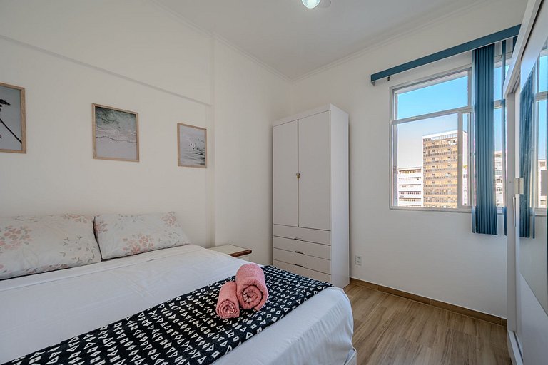 Próximo ao tradicional shopping de antiguidades de Copacabana, ao Teatro Claro Mais Rio, ao supermercado e lavanderias, oferece a minutos de distância passeios e conveniência.