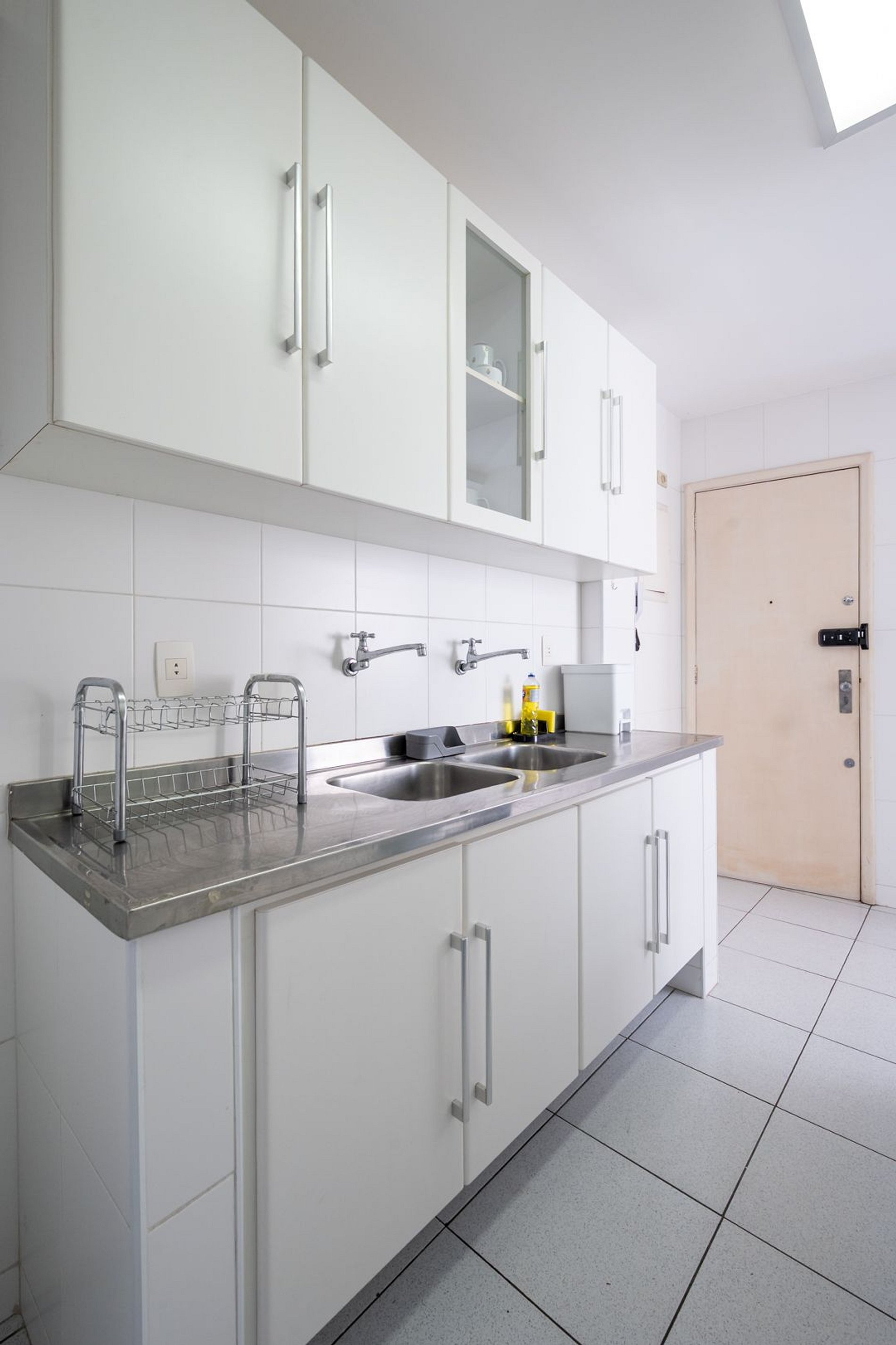 Sala ampla, banheiro, cozinha equipada e excelente localização: pertinho da praia, metrô, mercados e restaurantes.