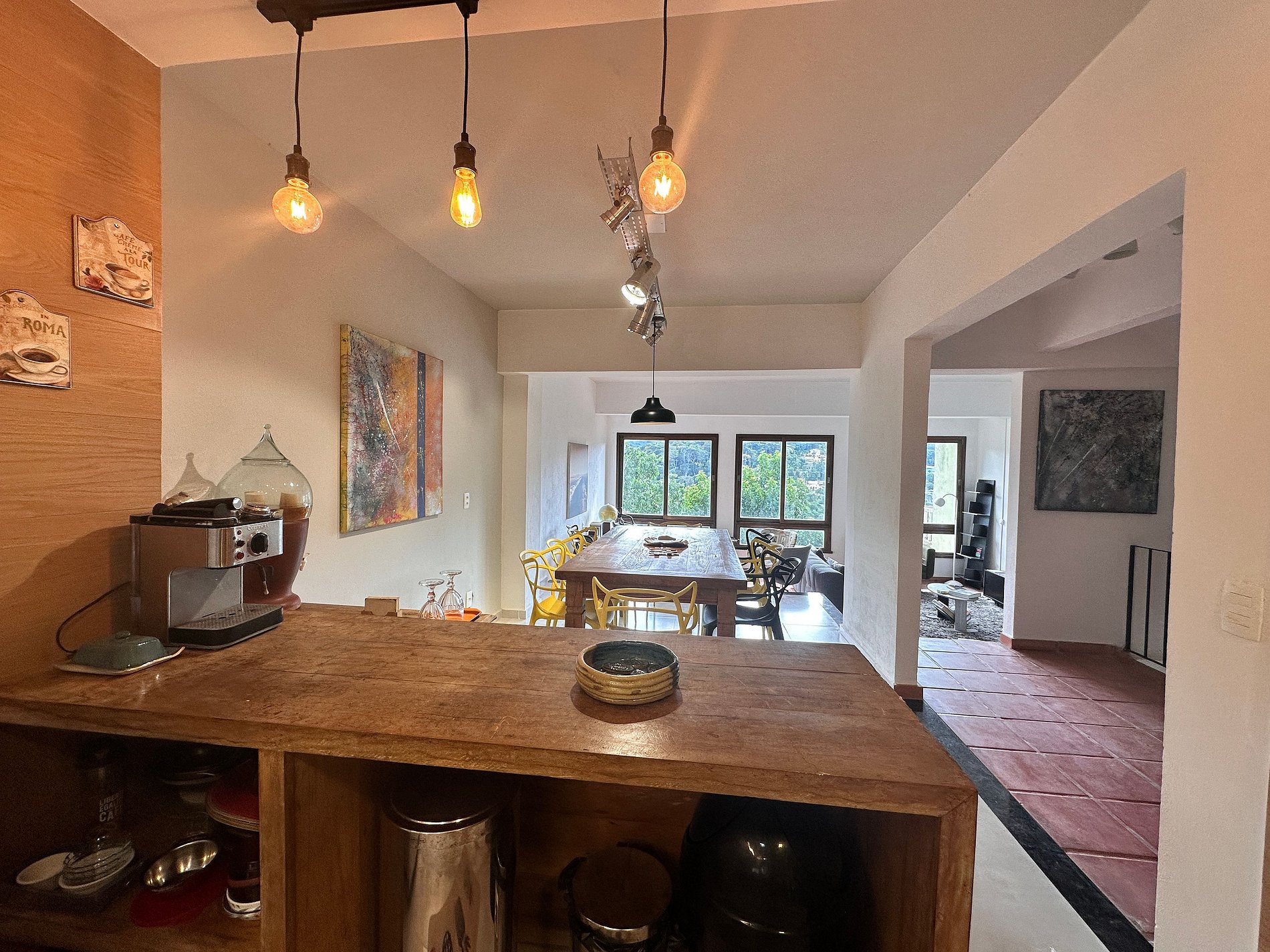 A cozinha é completa e integrada aos ambientes de convivência. Perfeita para quem busca conforto, natureza e tranquilidade.