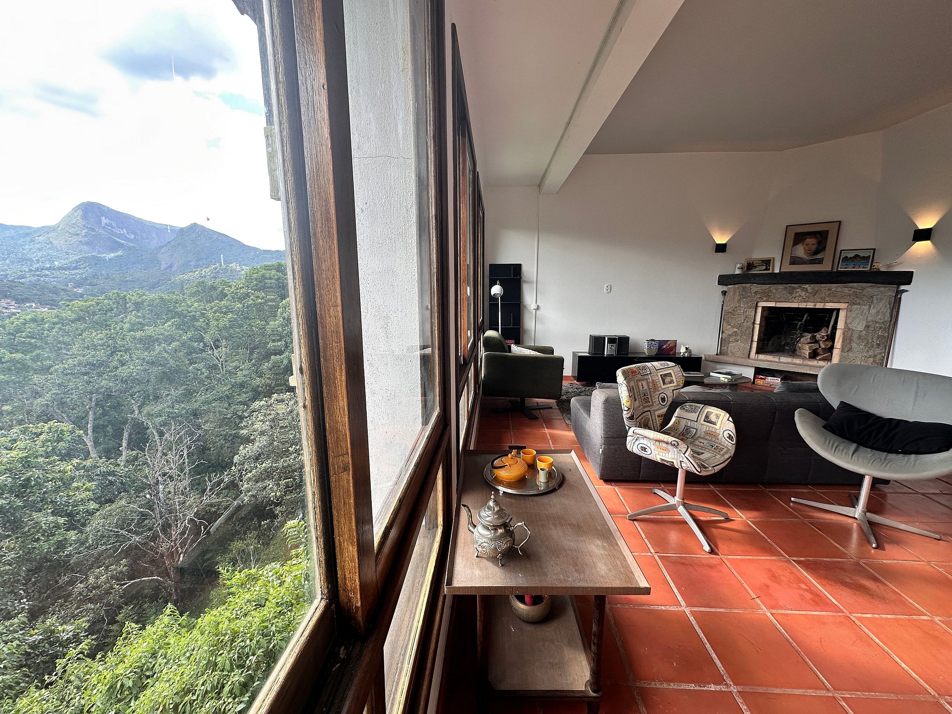 A casa oferece uma experiência única de contato com a natureza, cercada pela Mata Atlântica e com uma vista espetacular para as montanhas. Cada ambiente foi pensado para proporcionar conforto e bem-estar, com destaque para a lareira, a piscina ao ar livre, a sauna e a varanda com rede — perfeitos para relaxar e contemplar a paisagem