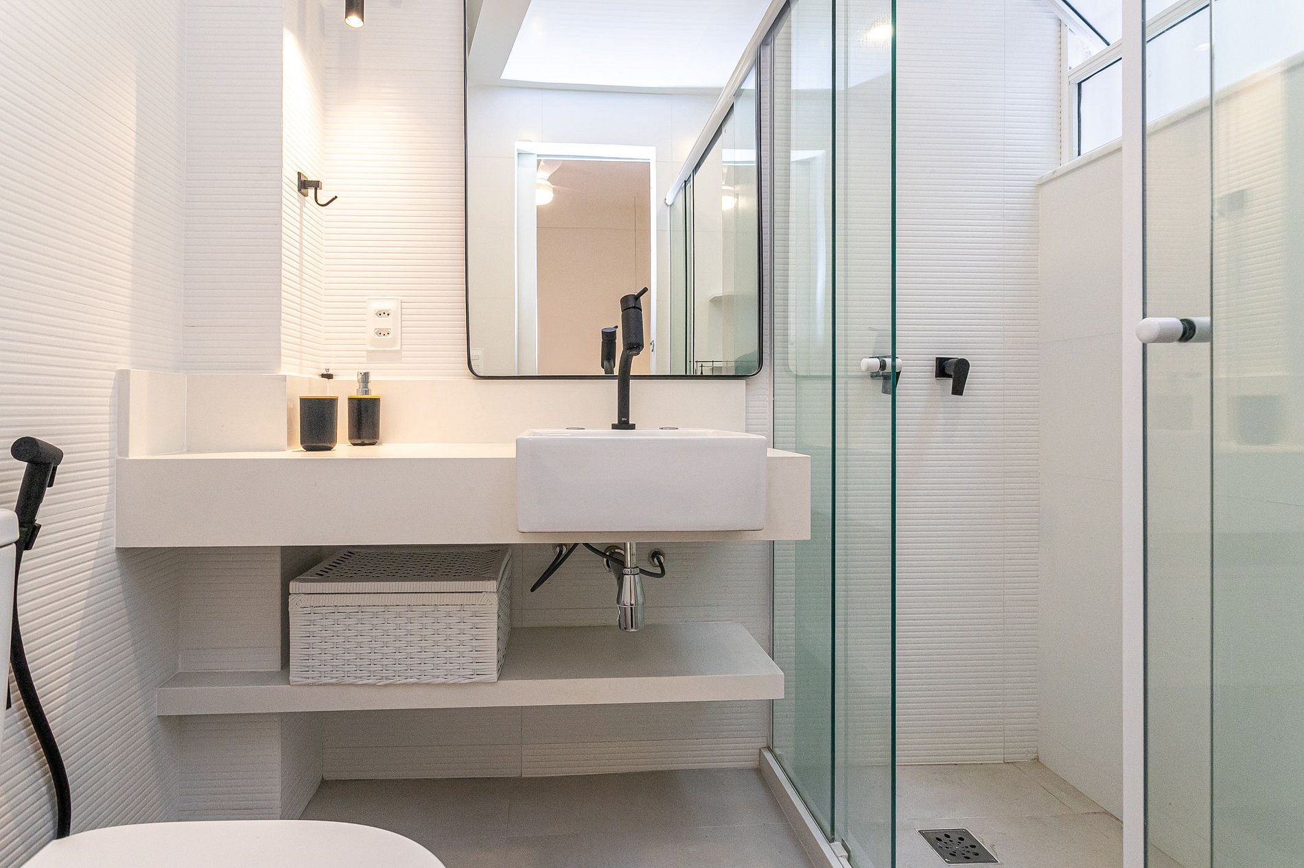 Banheiro e cuidados pessoais: chuveiro com água quente, toalhas limpas, secador de cabelo, e sabonete e shampoo.